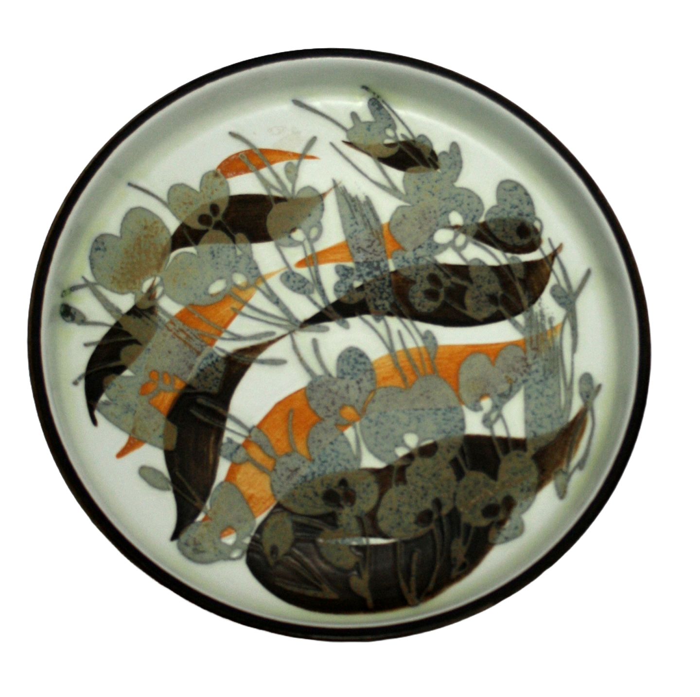 Royal Copenhagen Kunstfajance, Siena. Designet af Ivan Weiss. Lille rundt fad. Nr. 963/3290. Diameter 17 cm. Højde 2 cm. Pris: 250 kr.