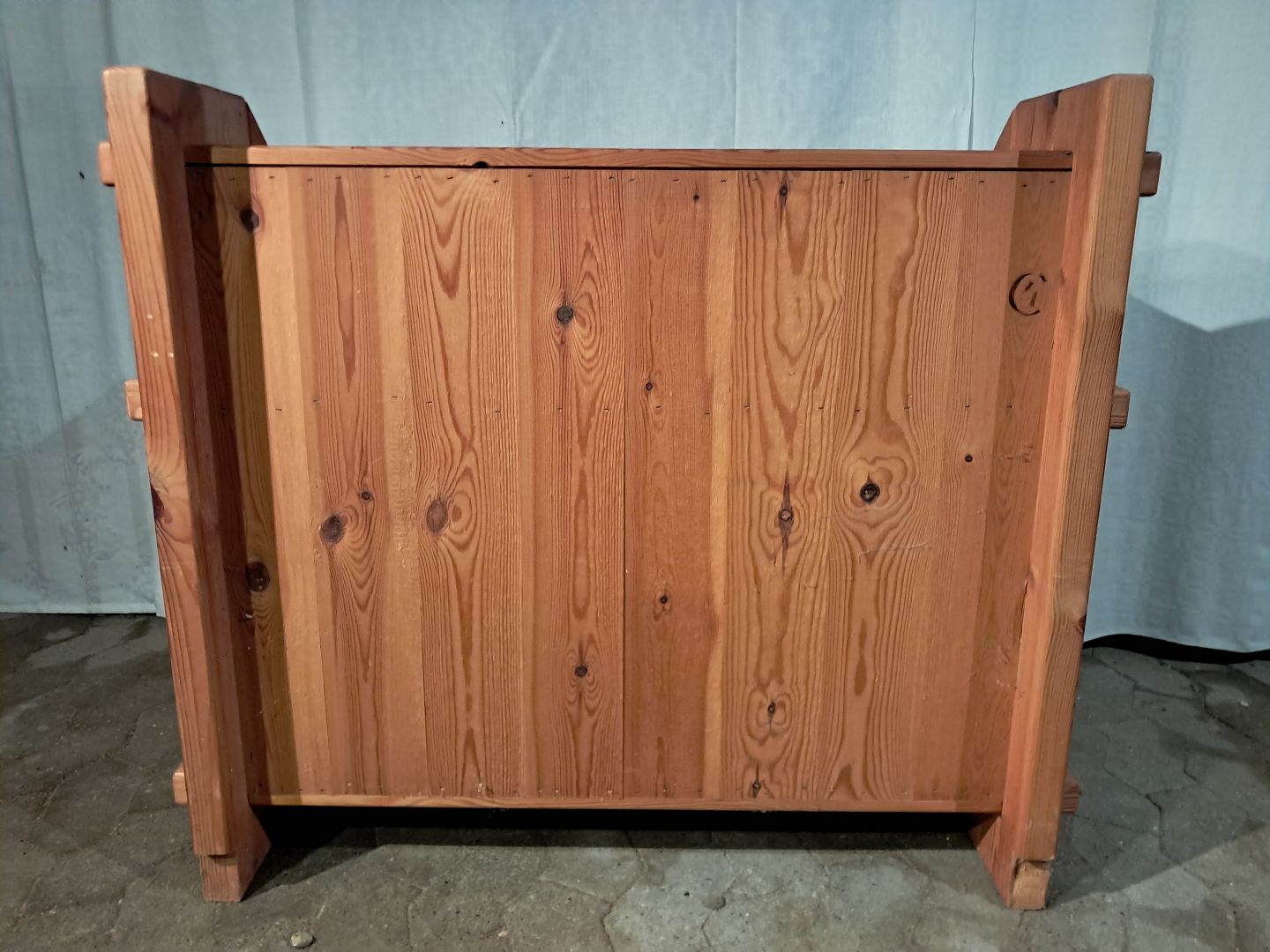 Telefonbænk i massivt fyrretræ, fra 1980erne.