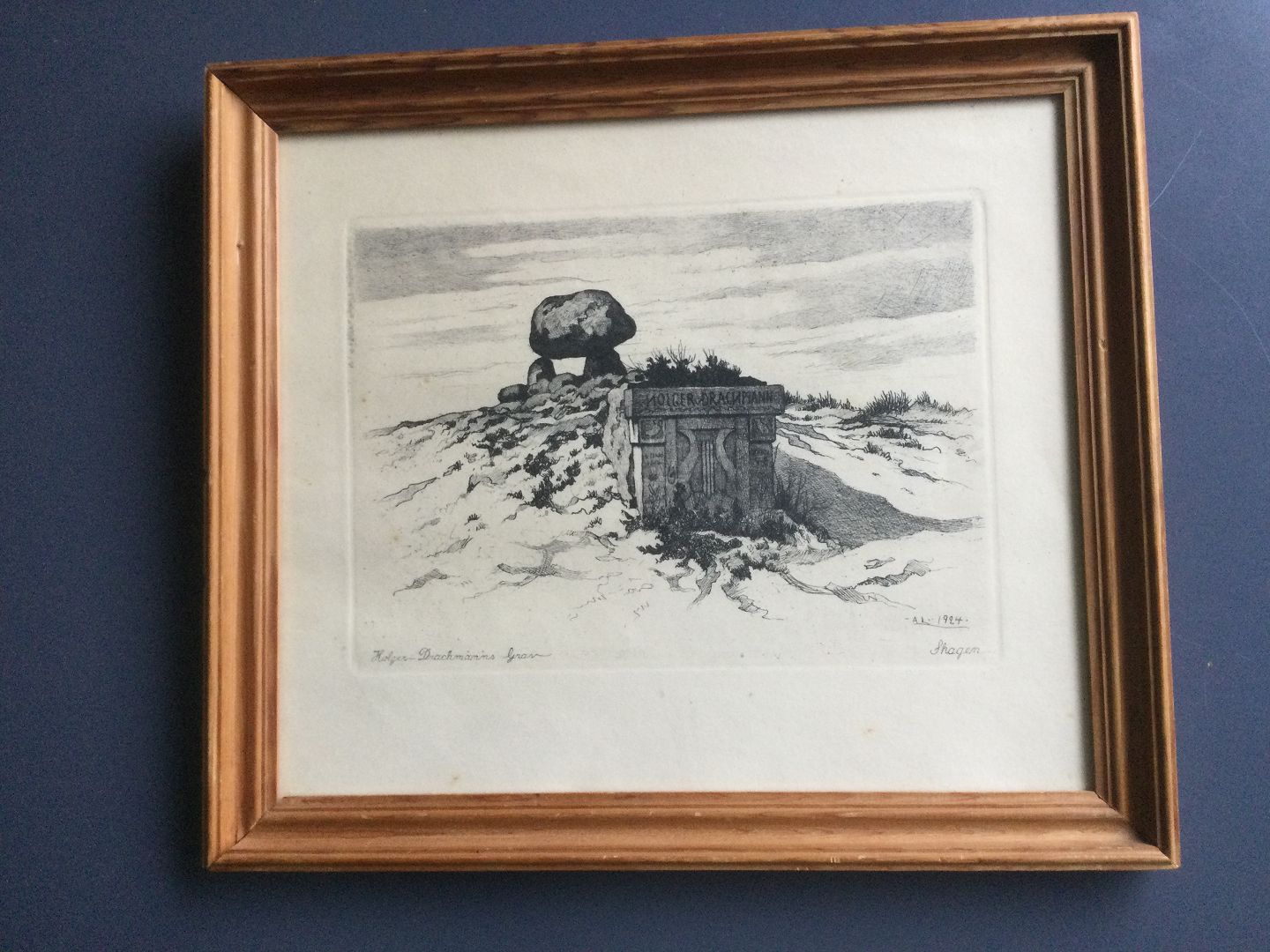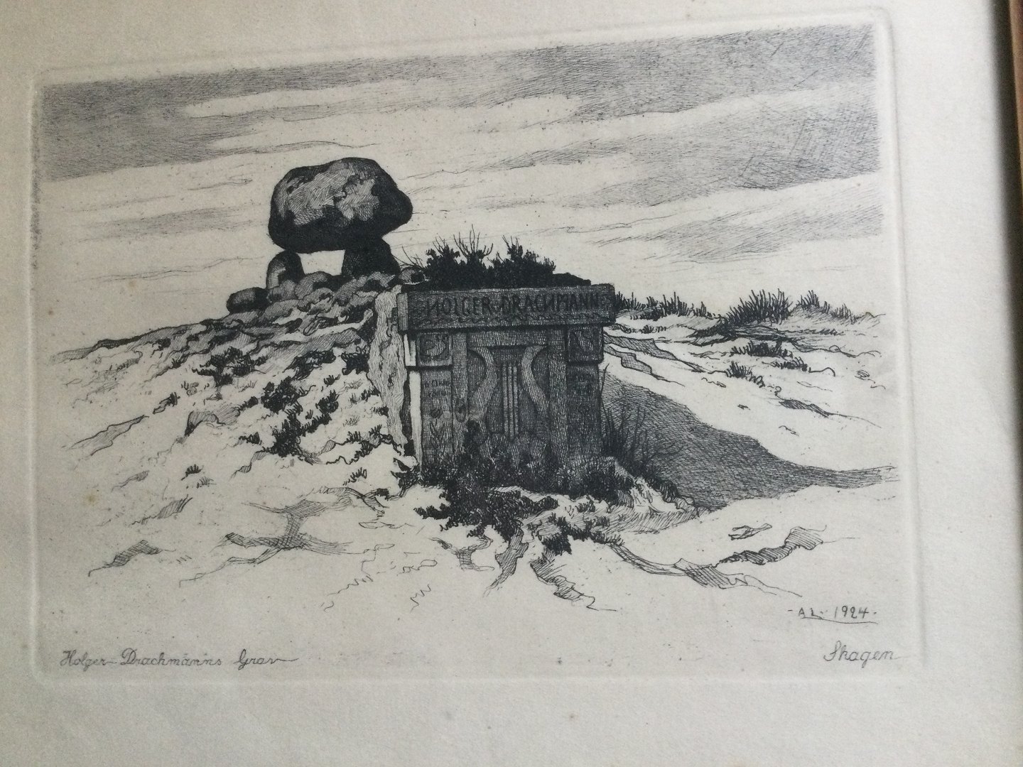 Radering af Anker Schouw-Lundberg 1924 - Holger Drachmanns Grav, Skagen.