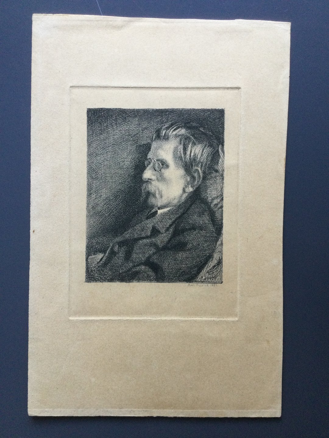 Radering Axel Helsted - Portræt af digteret J.P. Jacobsen 1885.