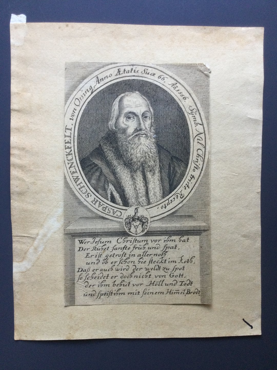 Kobberstik - Portræt af Teologen Kaspar von Schwenckfeld.