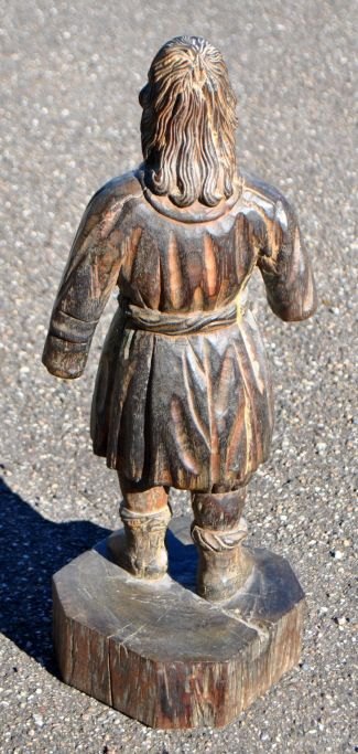 Carved wooden figure of Saint Morten (Martin), 18th/19th century. century. Philippines. Hard wood. Saint Morten in clothes and big boots. Height: 51 cm.