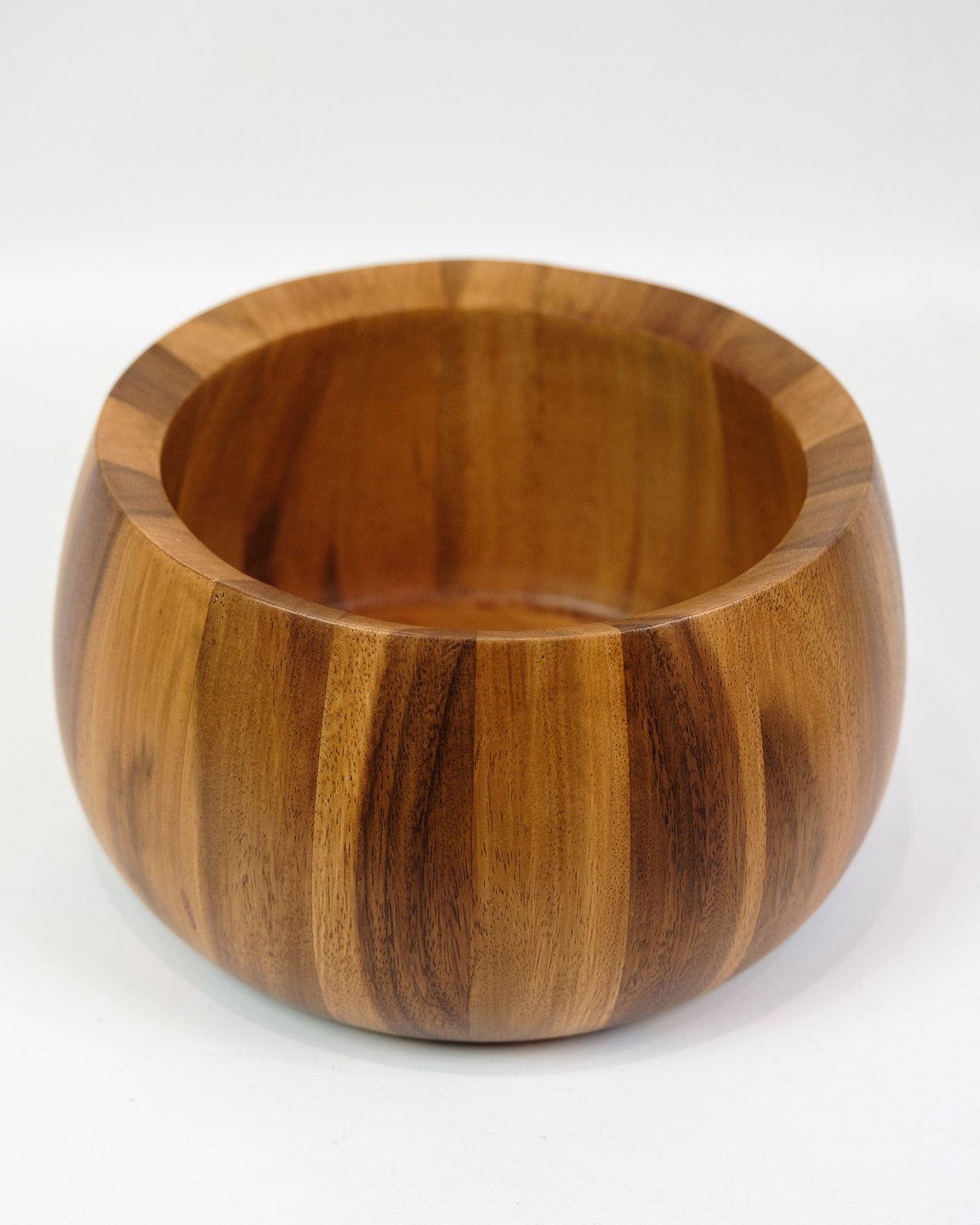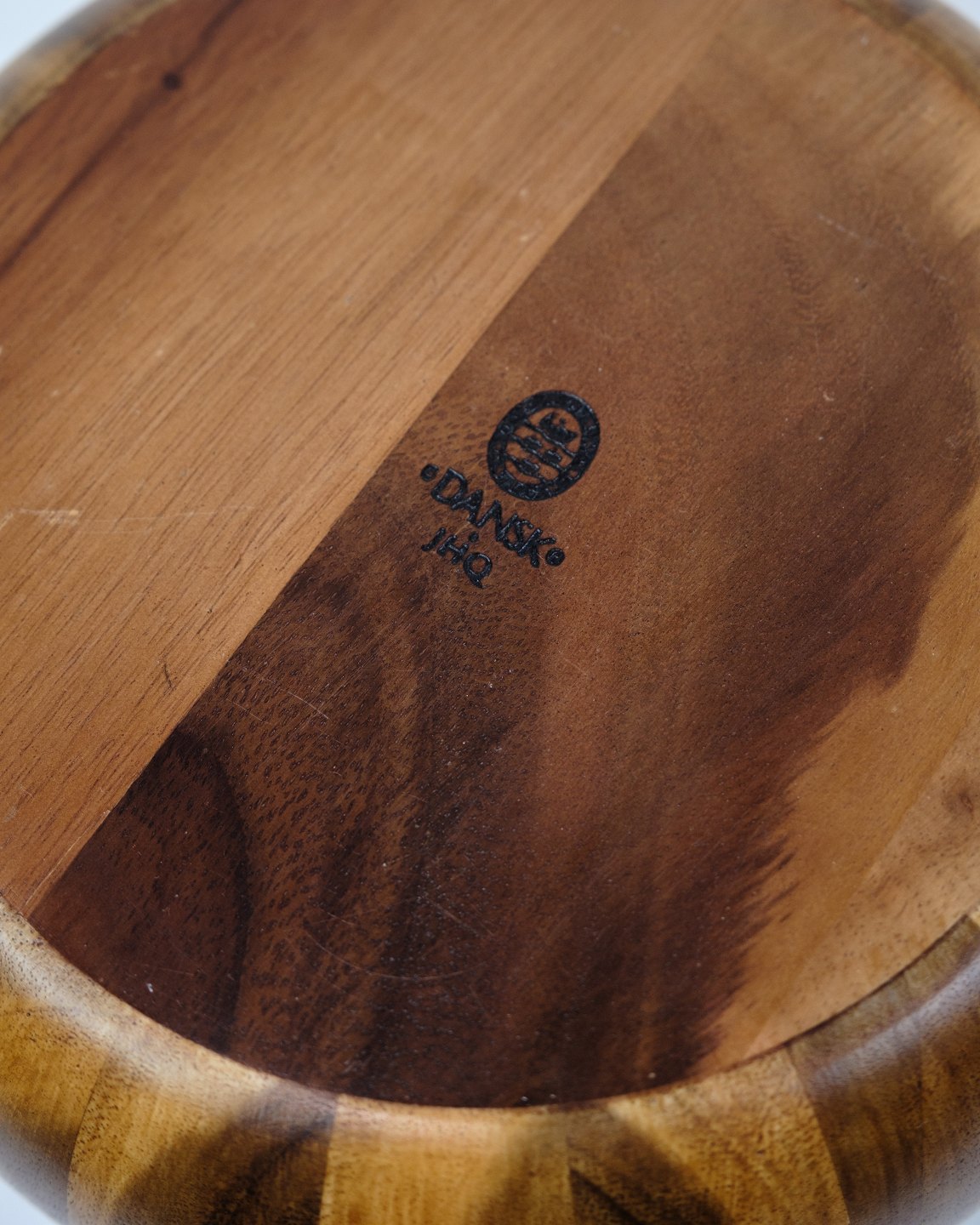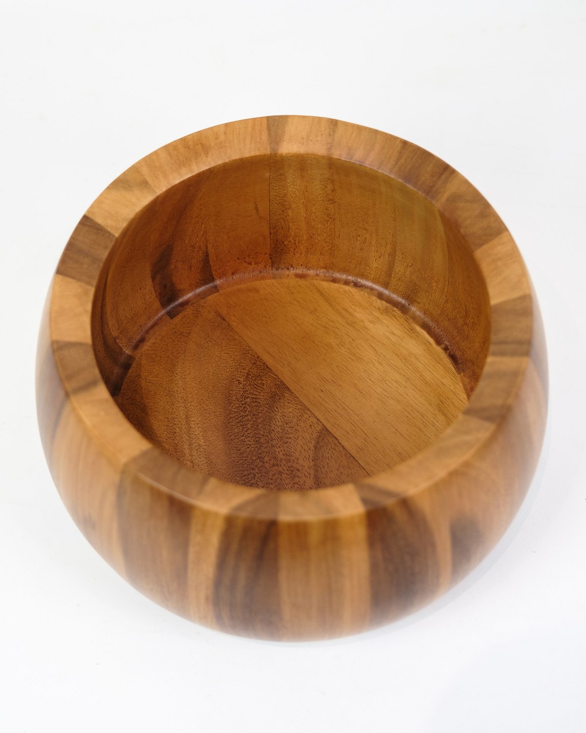 Denne store skål i teak er designet af Jens Harald Quistgaard for Dansk Designs i 1960'erne. Den er lavet af stavlimet teaktræ, som giver den en solid og praktisk konstruktion. Skålen måler cirka 12 cm i højden og 33 cm i diameter og er velegnet til både brug og dekoration.