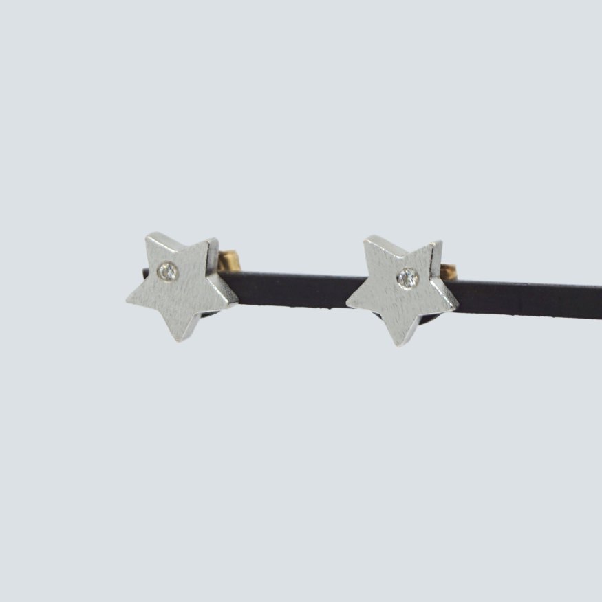 Ole Lynggaard; Stjerne ørestikker i 18 kt. hvidguld, hver ørering prydet med en brillantsleben diamant, i alt. 0,06 ct.