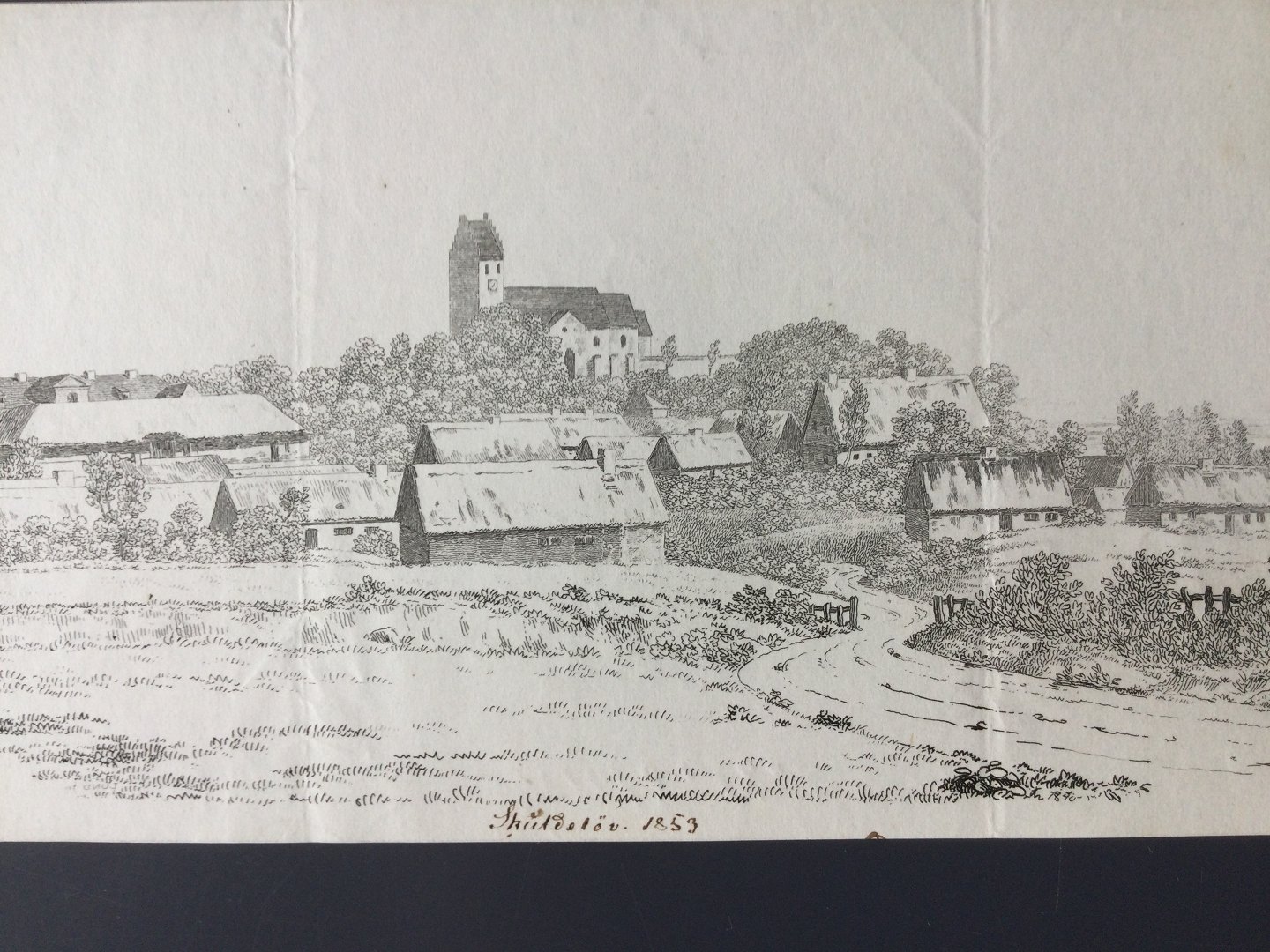 Radering af Jens Peter Lund 1853 - parti fra Skuldelev.