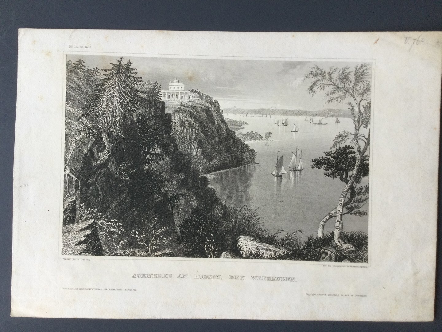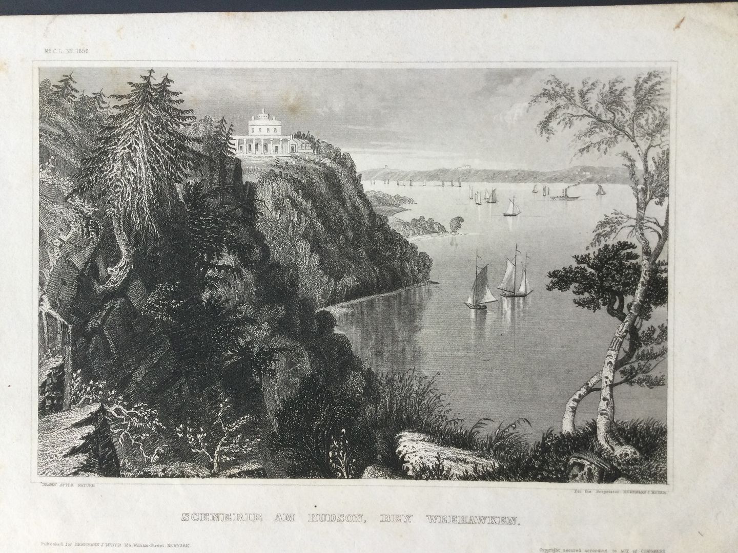 Stålstik af Hermann Julius Meyer - parti fra Weehawken Hudson ca 1850.