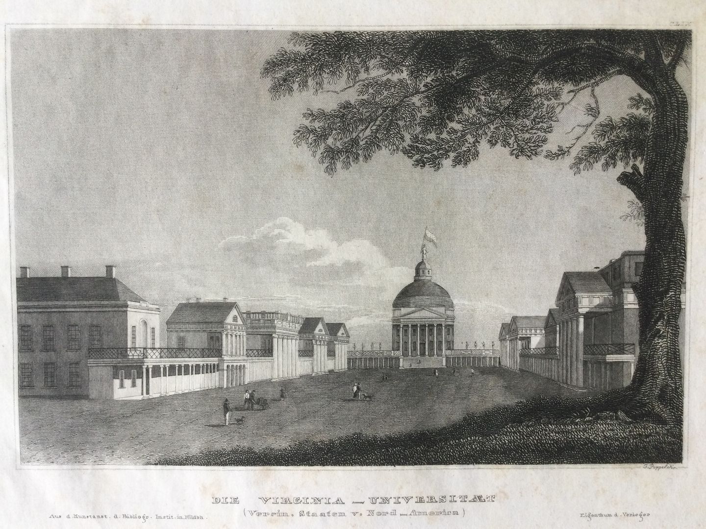 Stålstik af Johann Poppel - Universitetet i Virginia ca 1850.