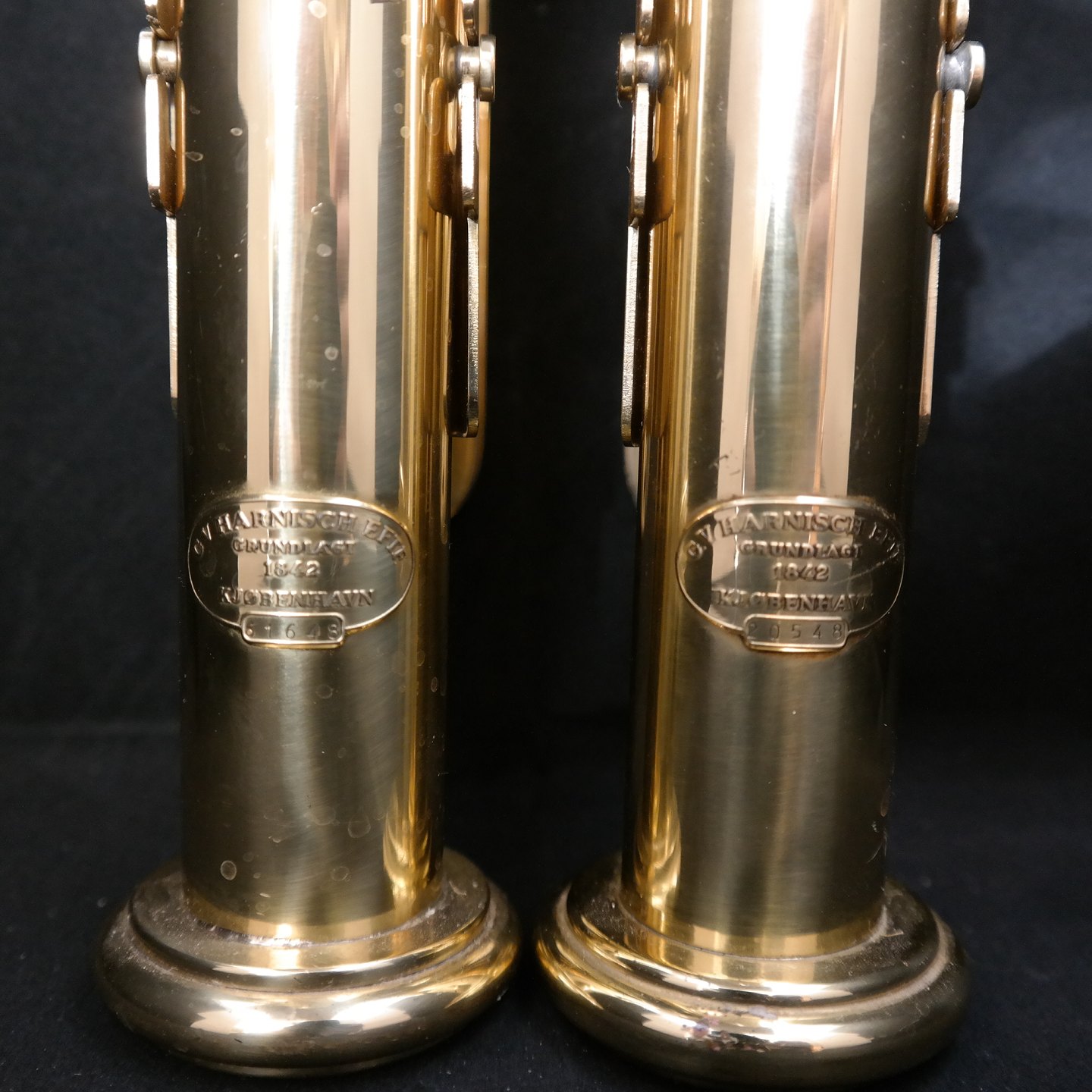 Et sæt nummererede vægstager i messing af G.V. Harnisch EFTF. grundlagt i København 1842.
