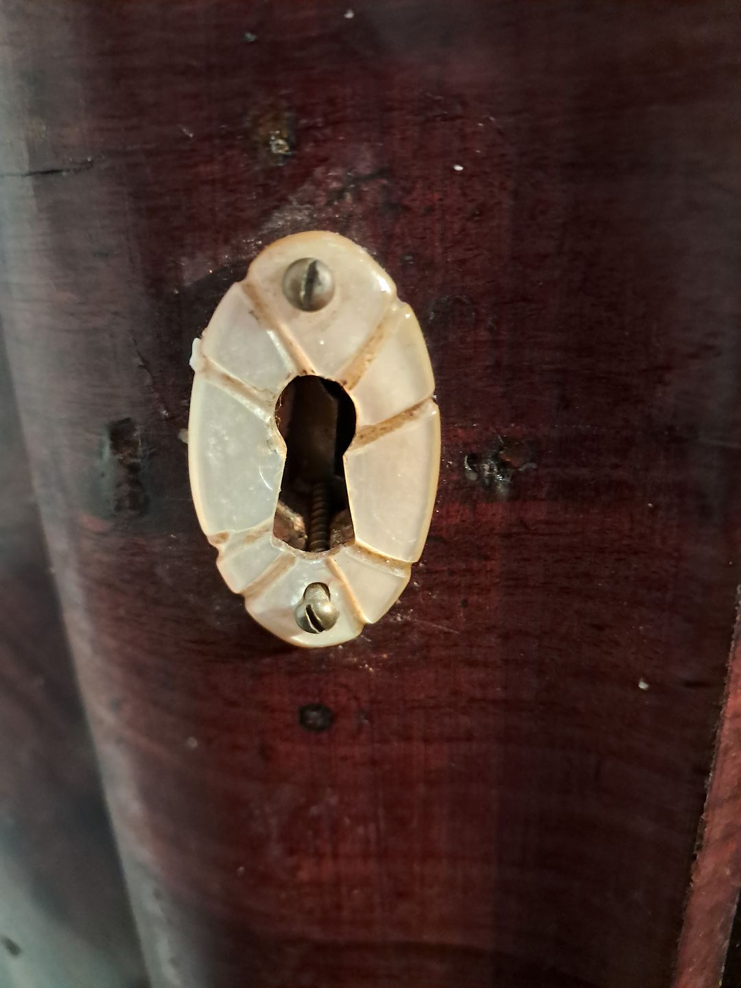 Hjørneskab i fineret mahogni, fra 1890erne.