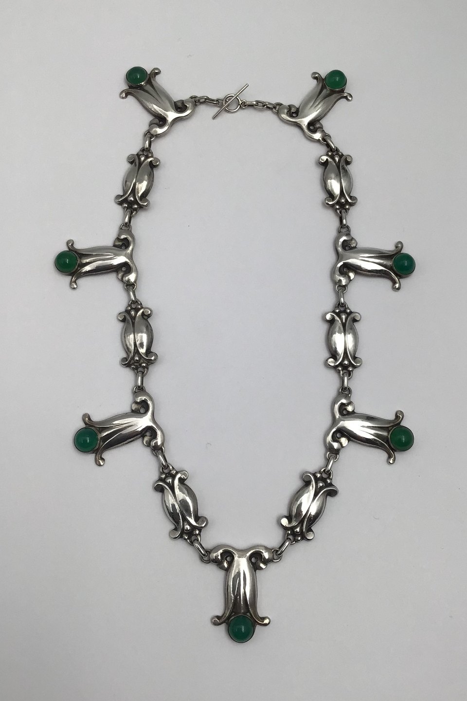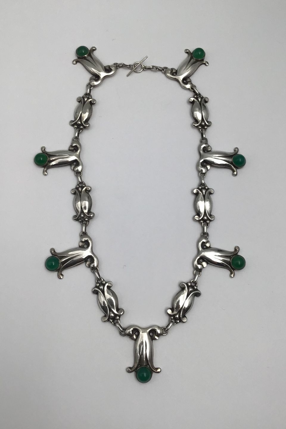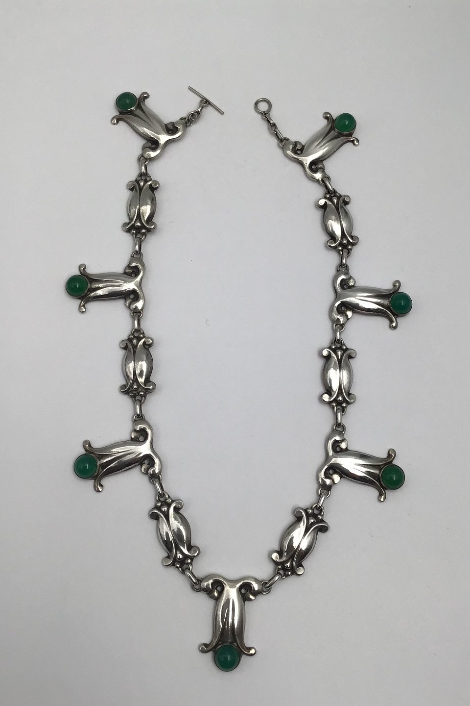 Georg Jensen 826 Sølv Halskæde No. 6 (Grøn Agat) (1909-1914)