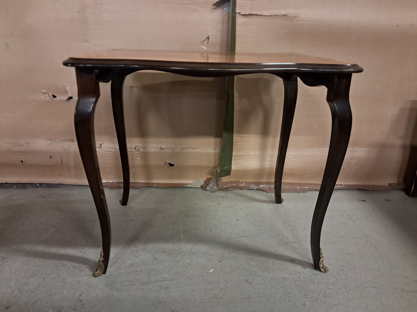 Lampebord med intarsia i fineret mahogni, fra 1980erne.