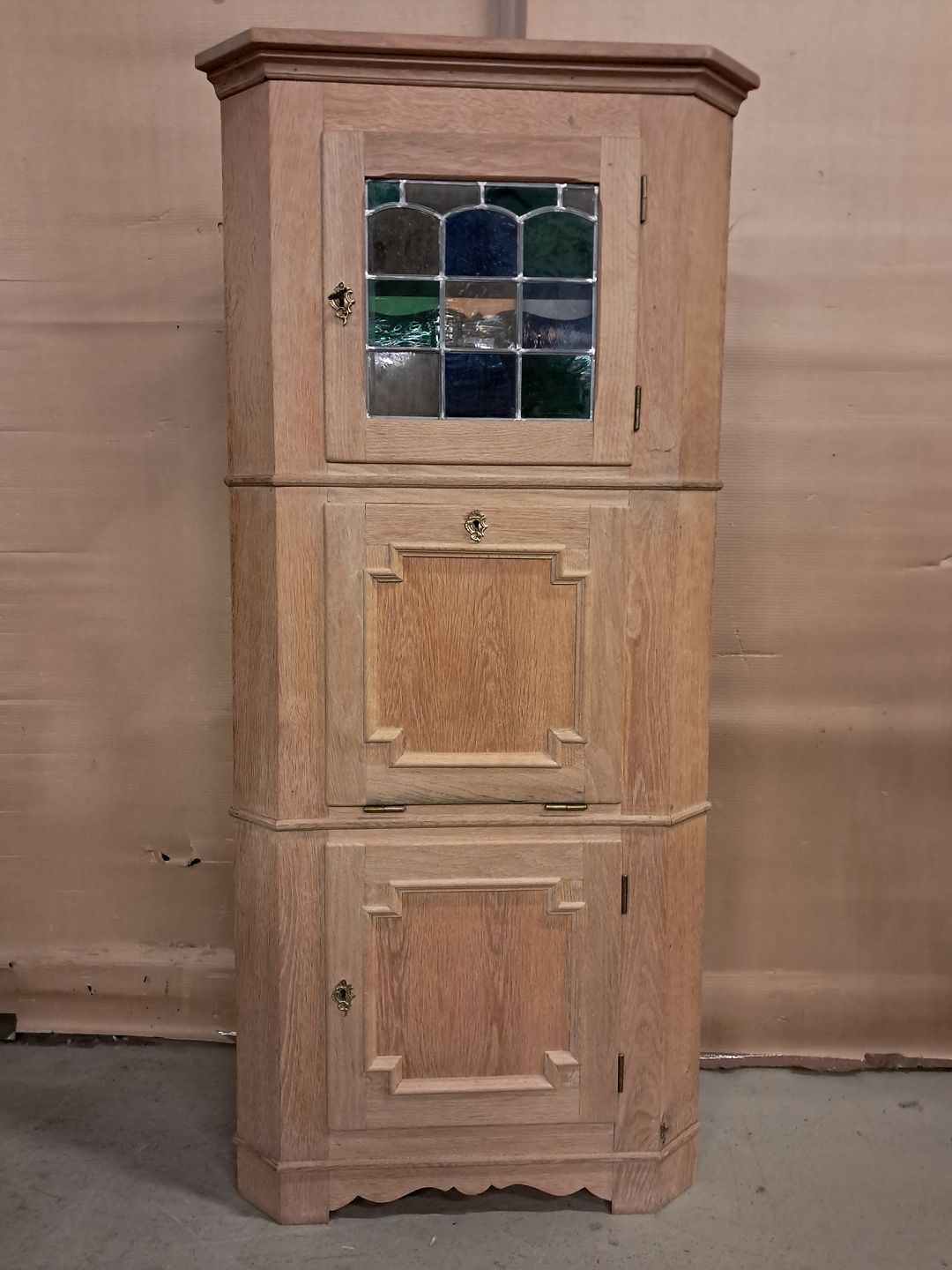 Hjørneskab i massivt egetræ, fra 1980erne.