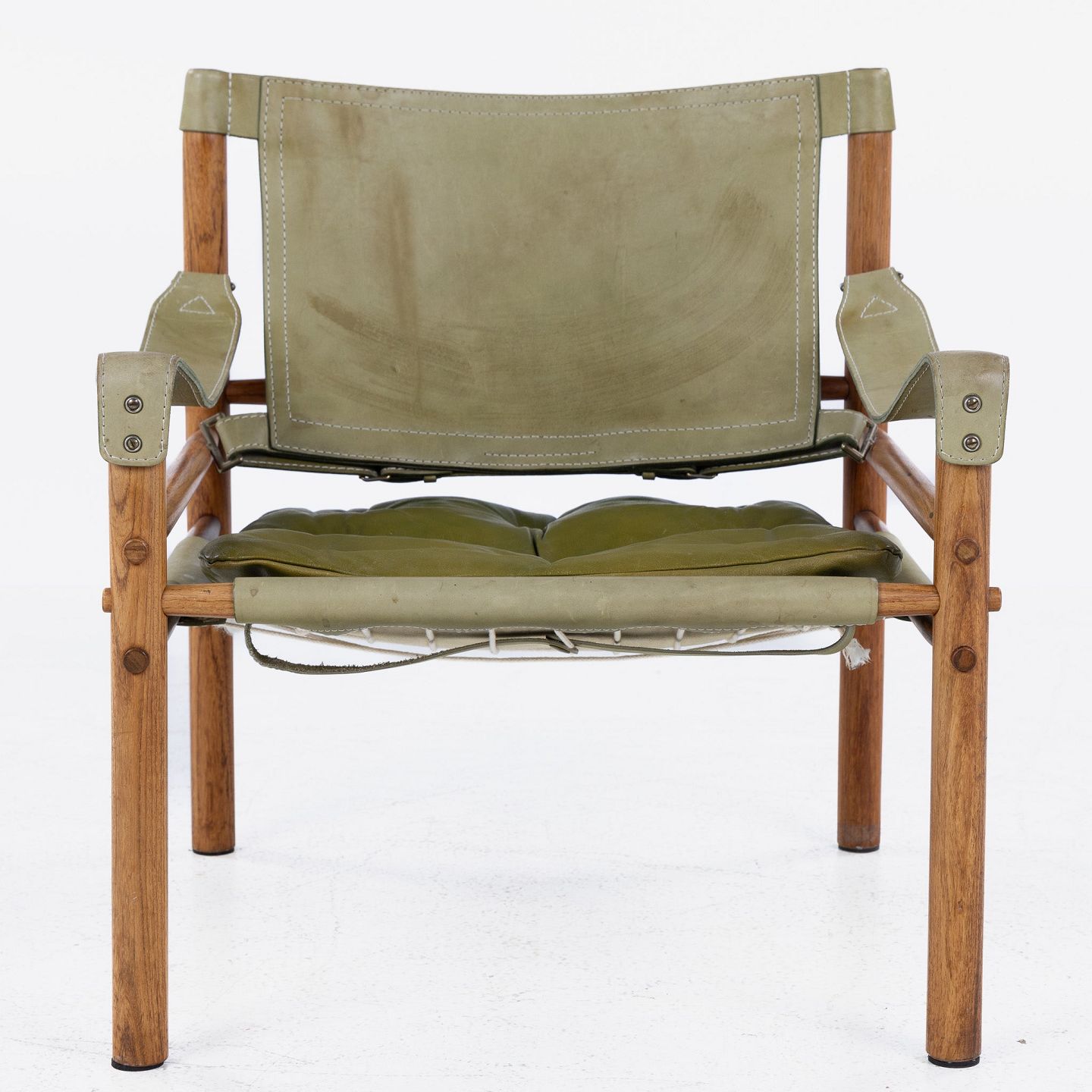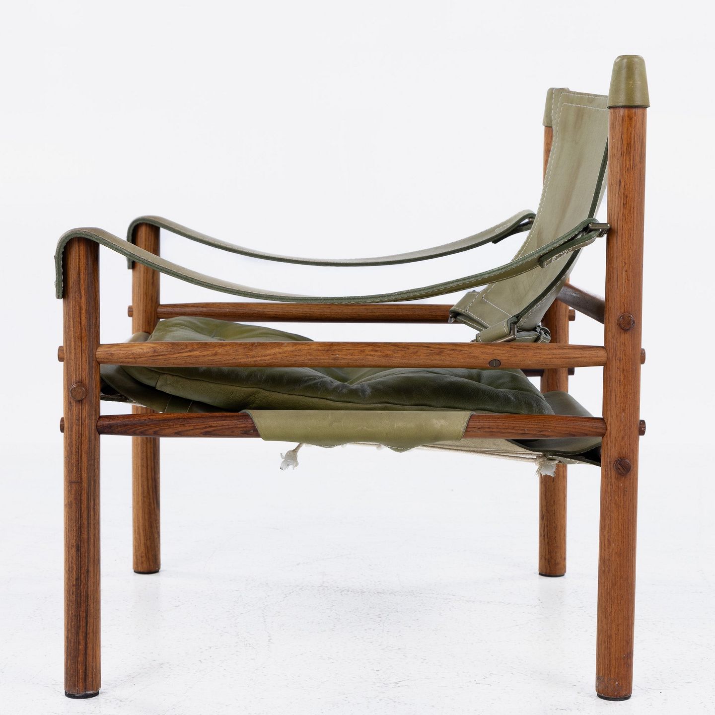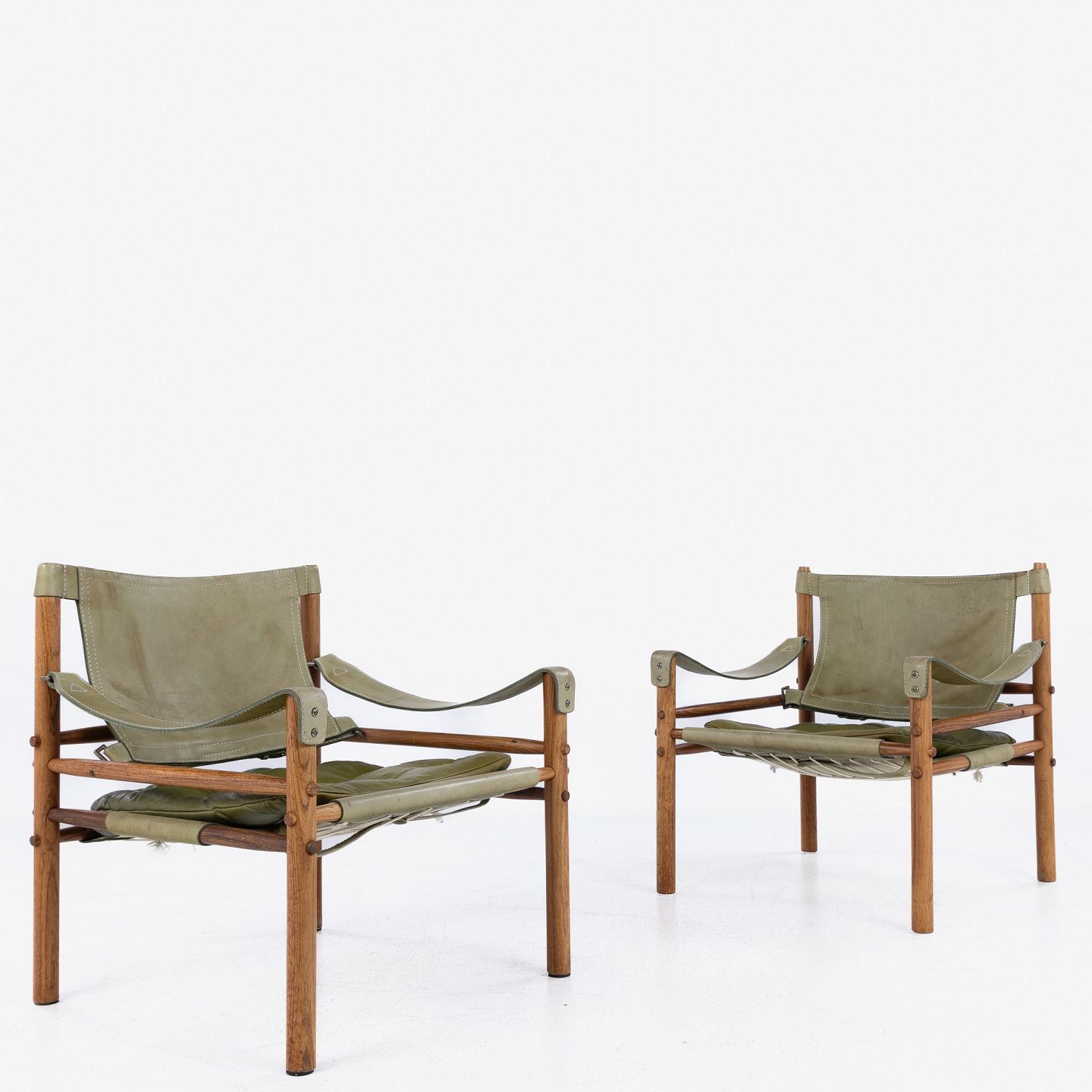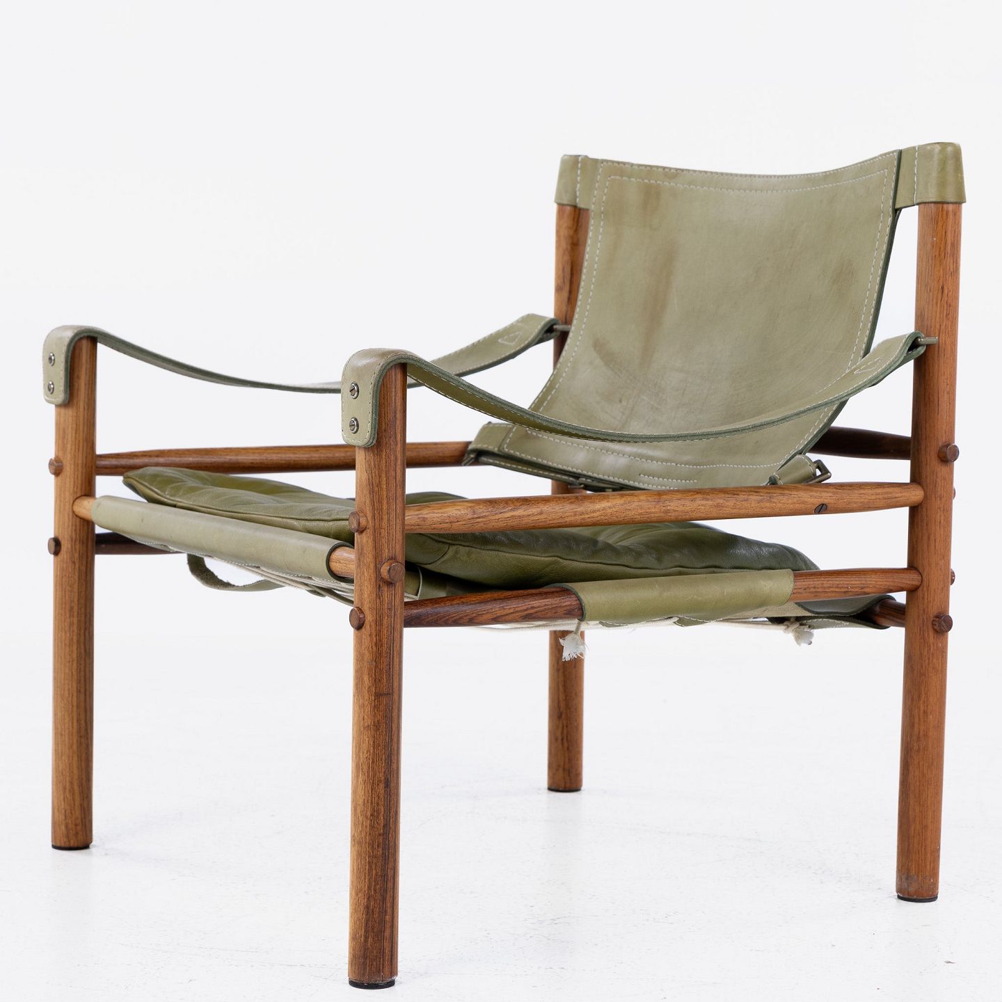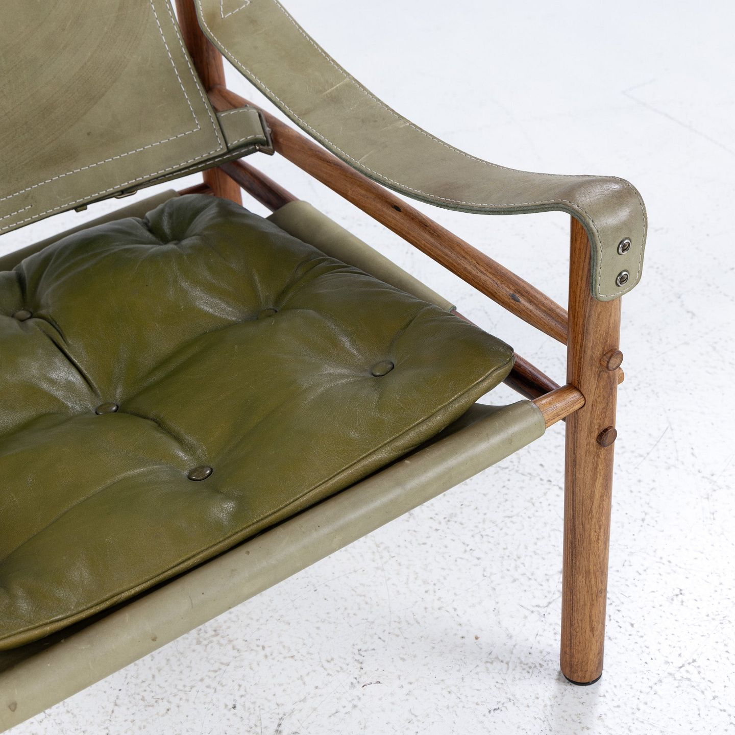 Pair of 'Scirocco' safari armchairs in rosewood with green full grain leather.