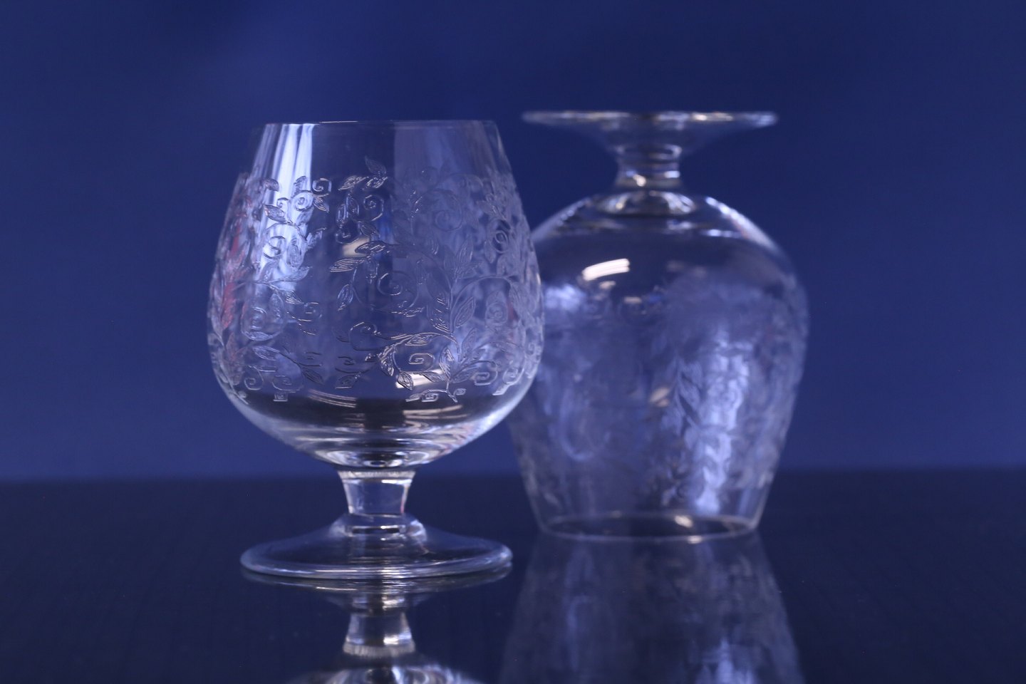 Flot cognacglas med spirende bladmønster. Glasset er i antik stil, der leder tanken tilbage til 1800-tallet, med cigarer og poker. Et flot glas, der vil være ideelt til cognacen ved spillebordet eller til kaffen efter middagen.