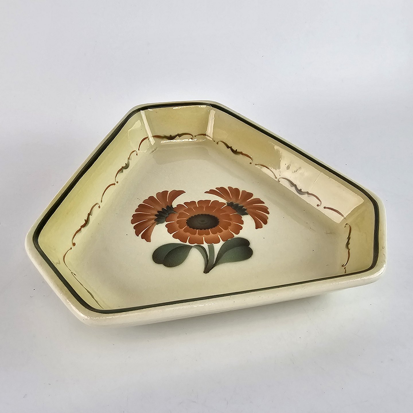 Trekantet fad af fajance fra stellet Morgenfrue.