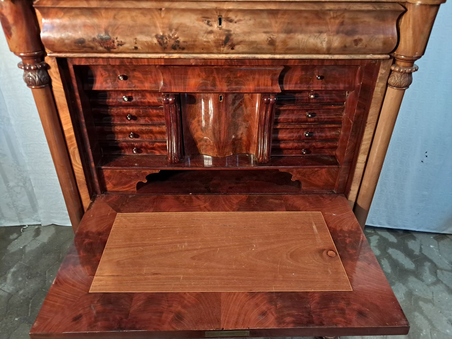 Sekretær i fineret mahogni, fra 1890erne.