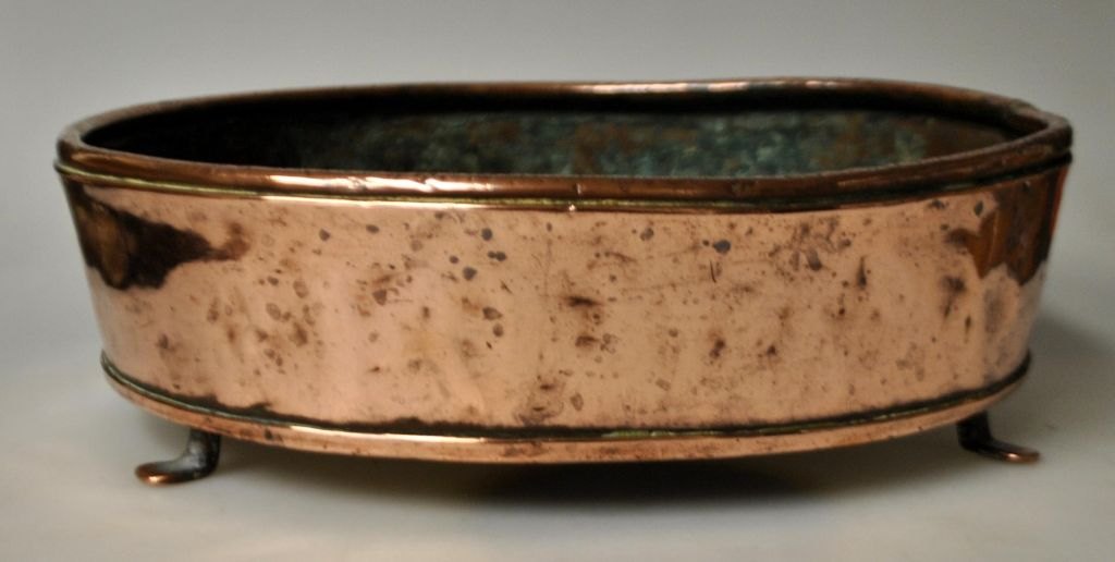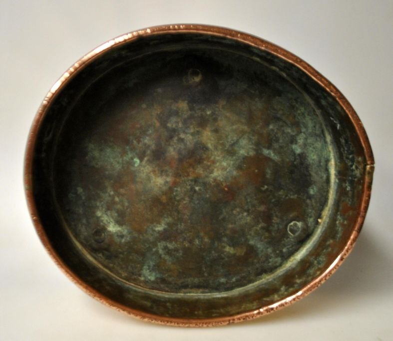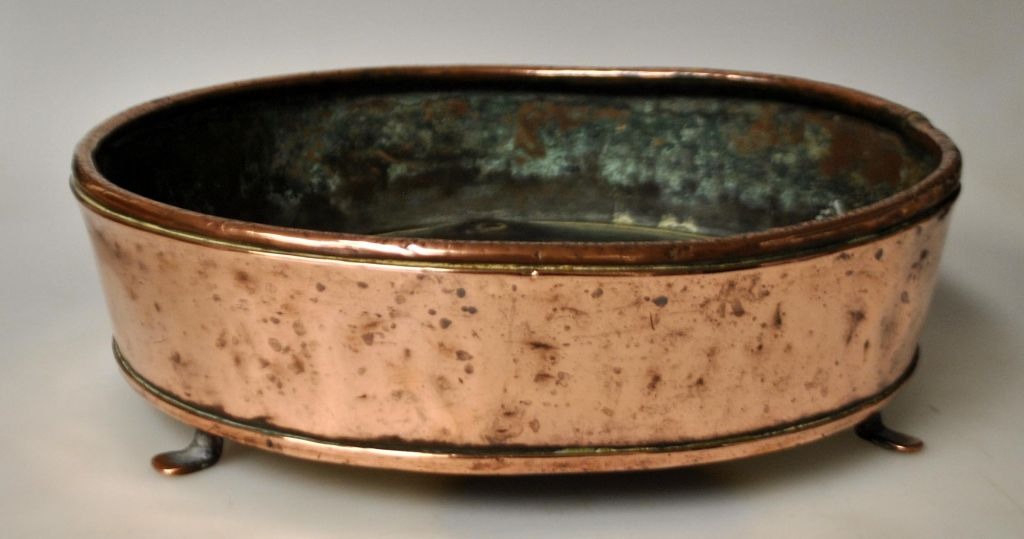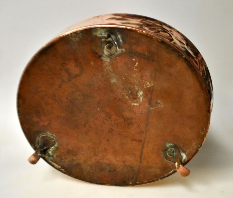 Antique copper form, oval, on three legs, 19th century Denmark.