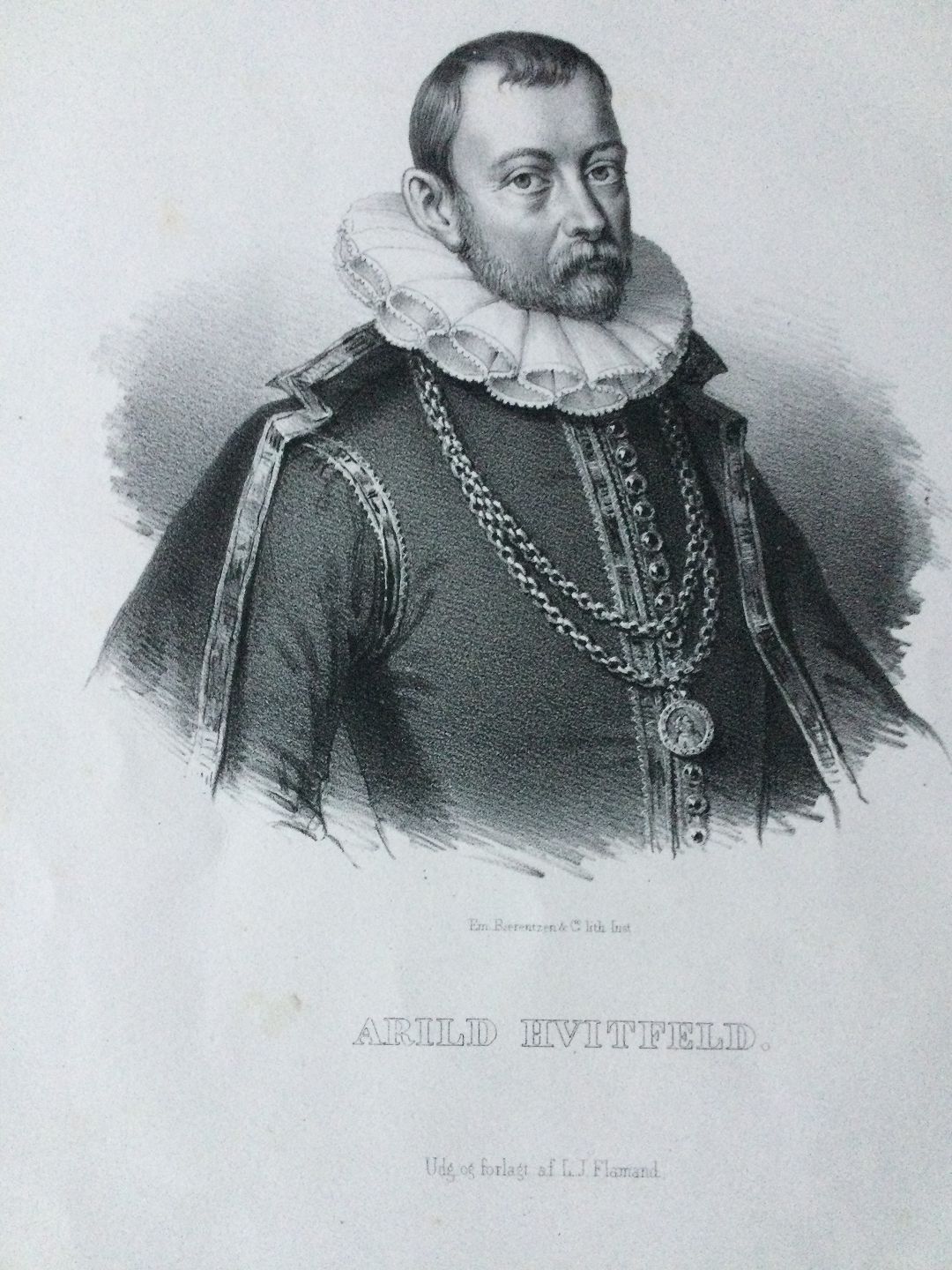 Litografi af Em. Bærentzen - Portræt af Historiker og Rigskansler Arild Huitfeldt.
