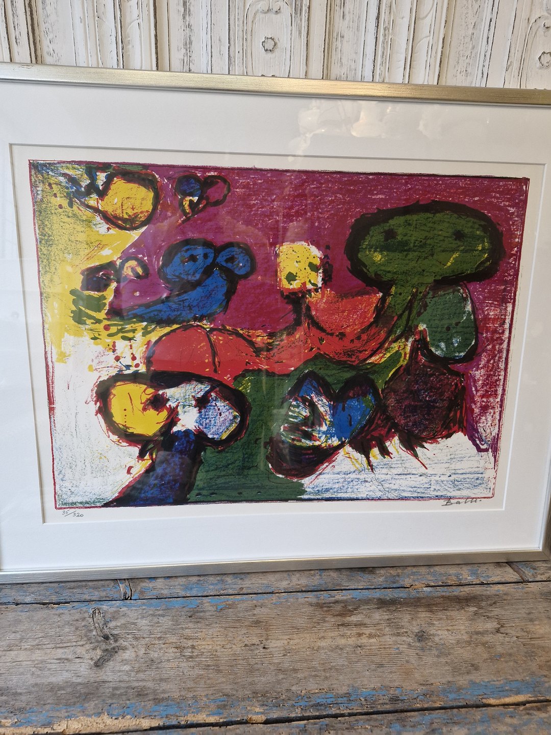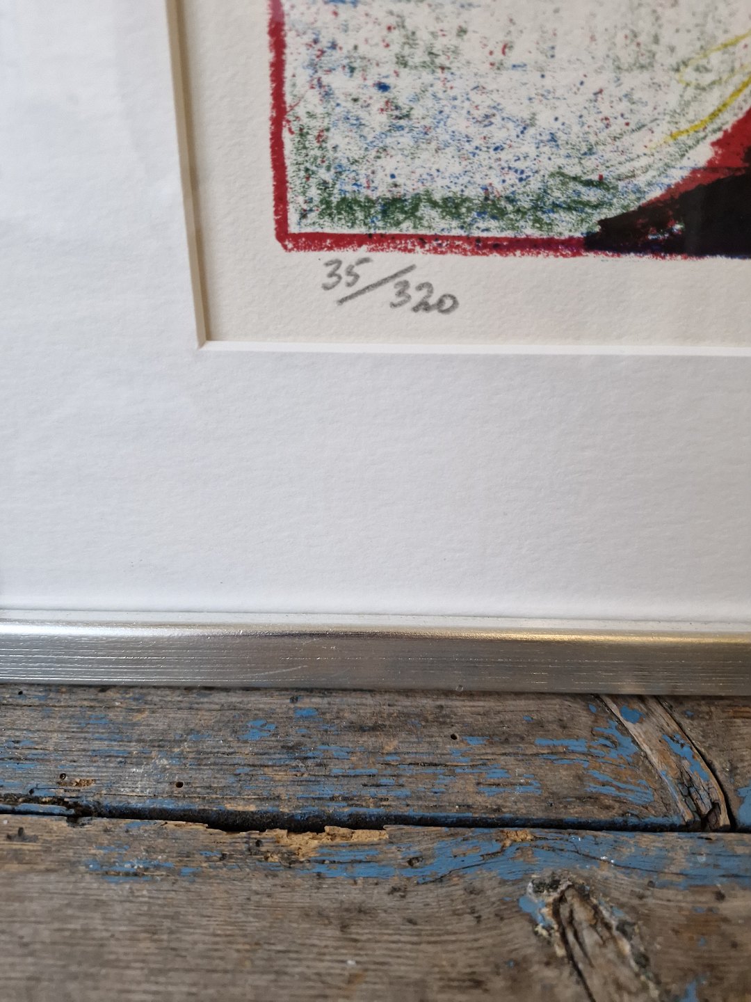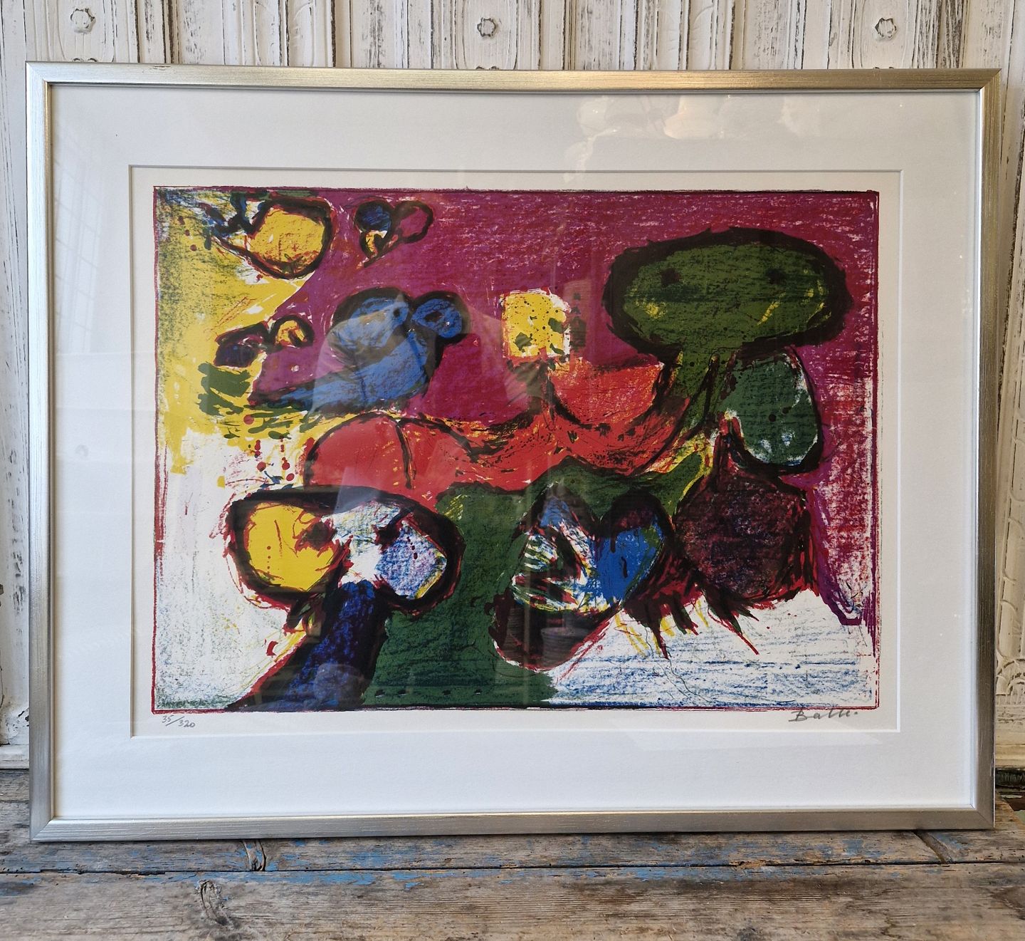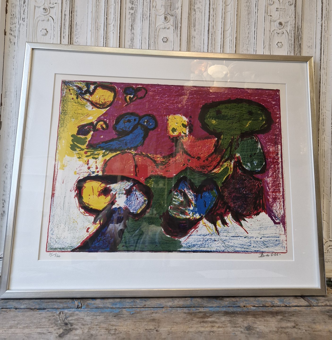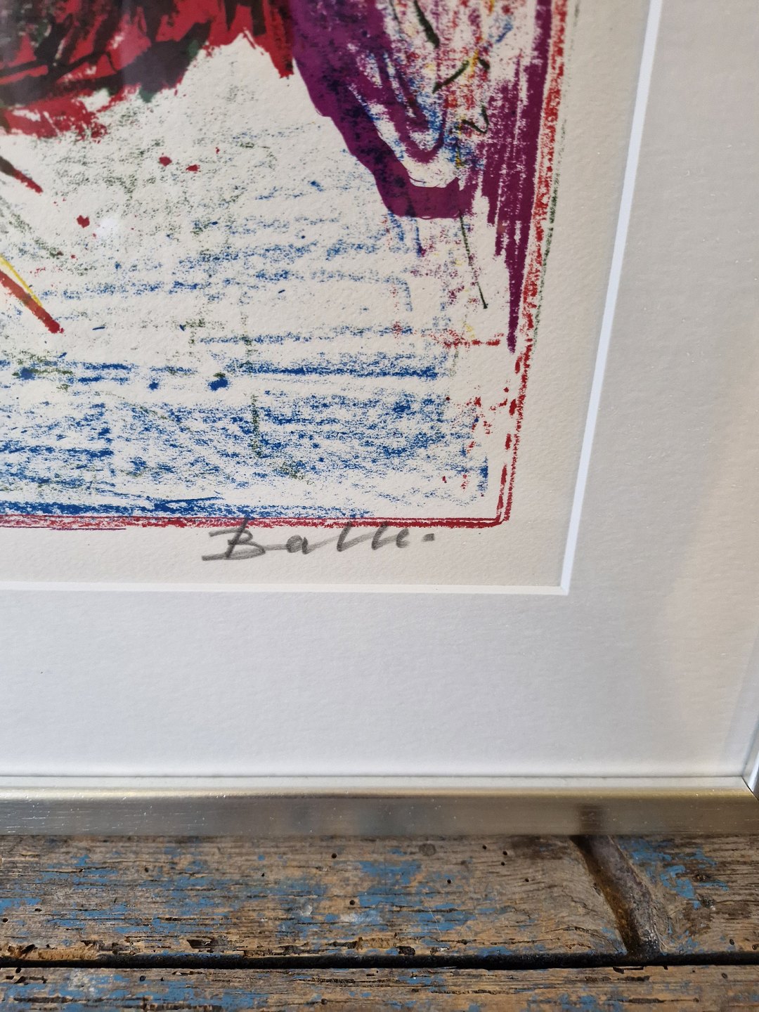 Mogens Balle (1921-1988) Lithograph in strong colors in a nice silver frame.