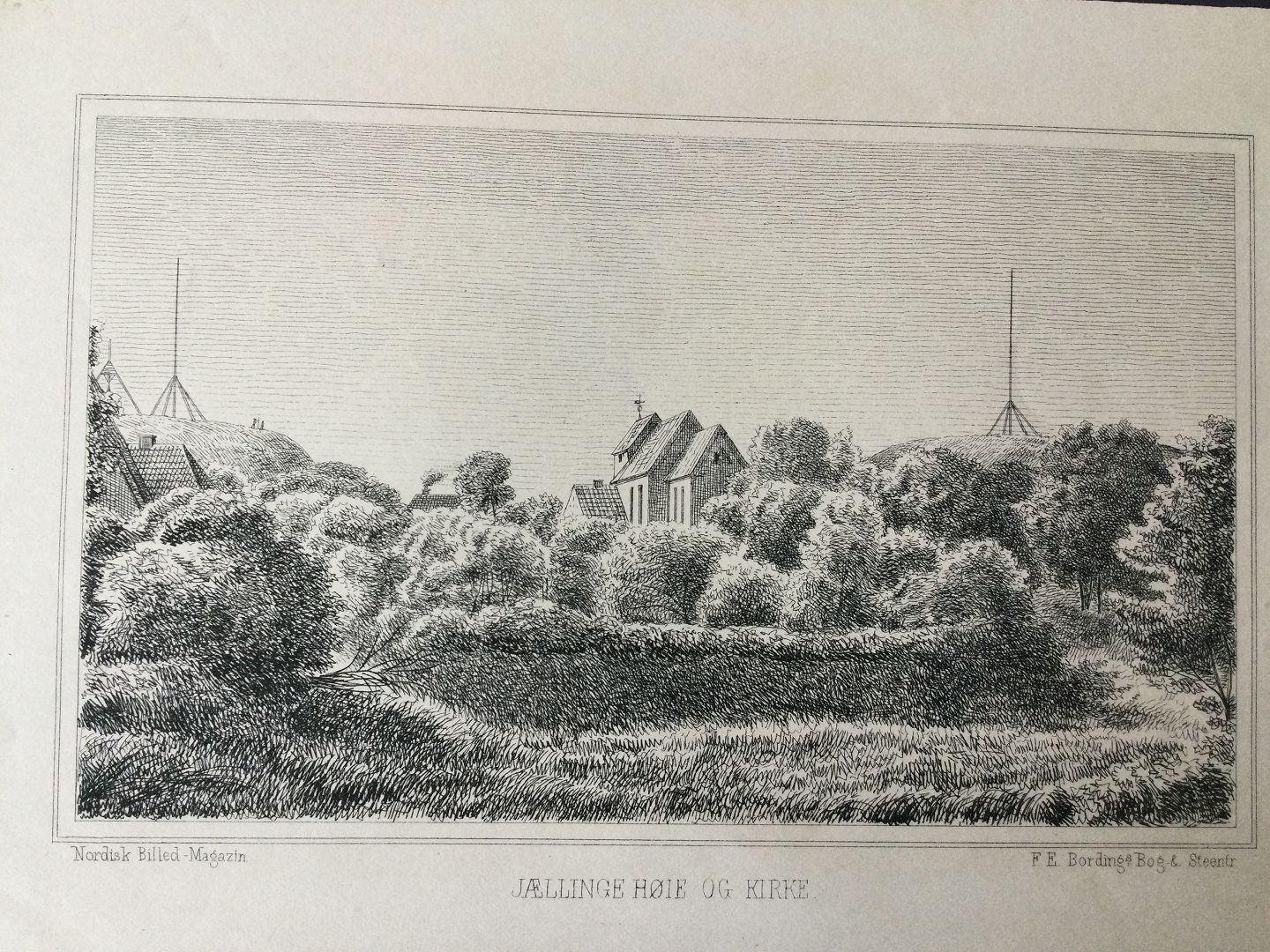 Jelling Kirke og Højene ca. 1865.