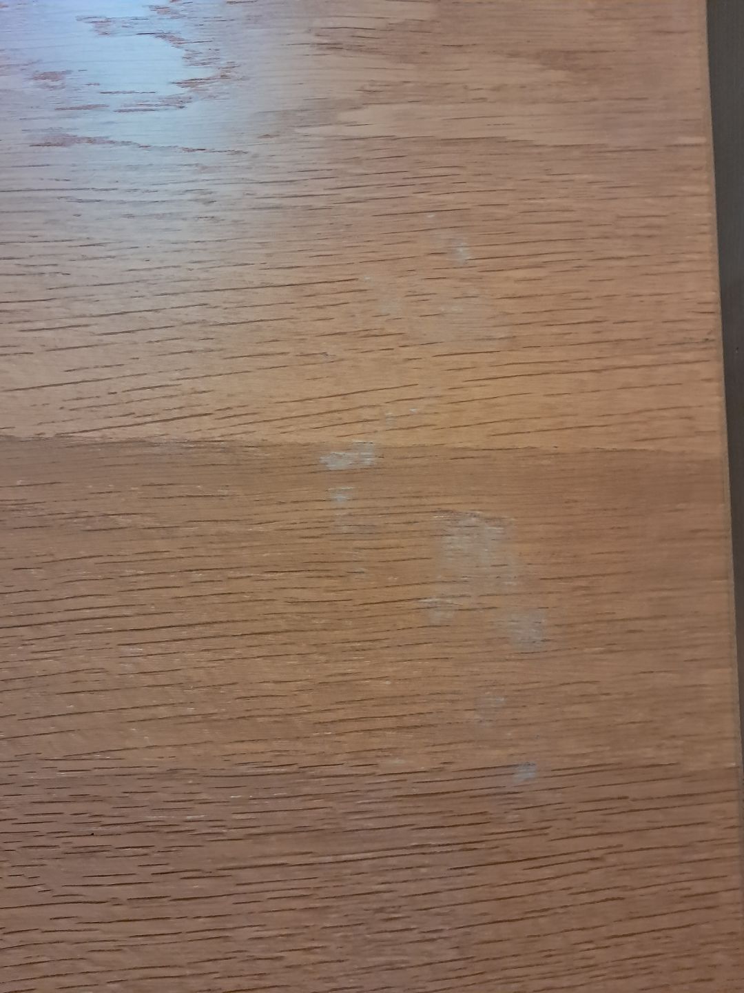 Spisebord med 2 tillægsplader i massivt egetræ, fra 1980erne.
