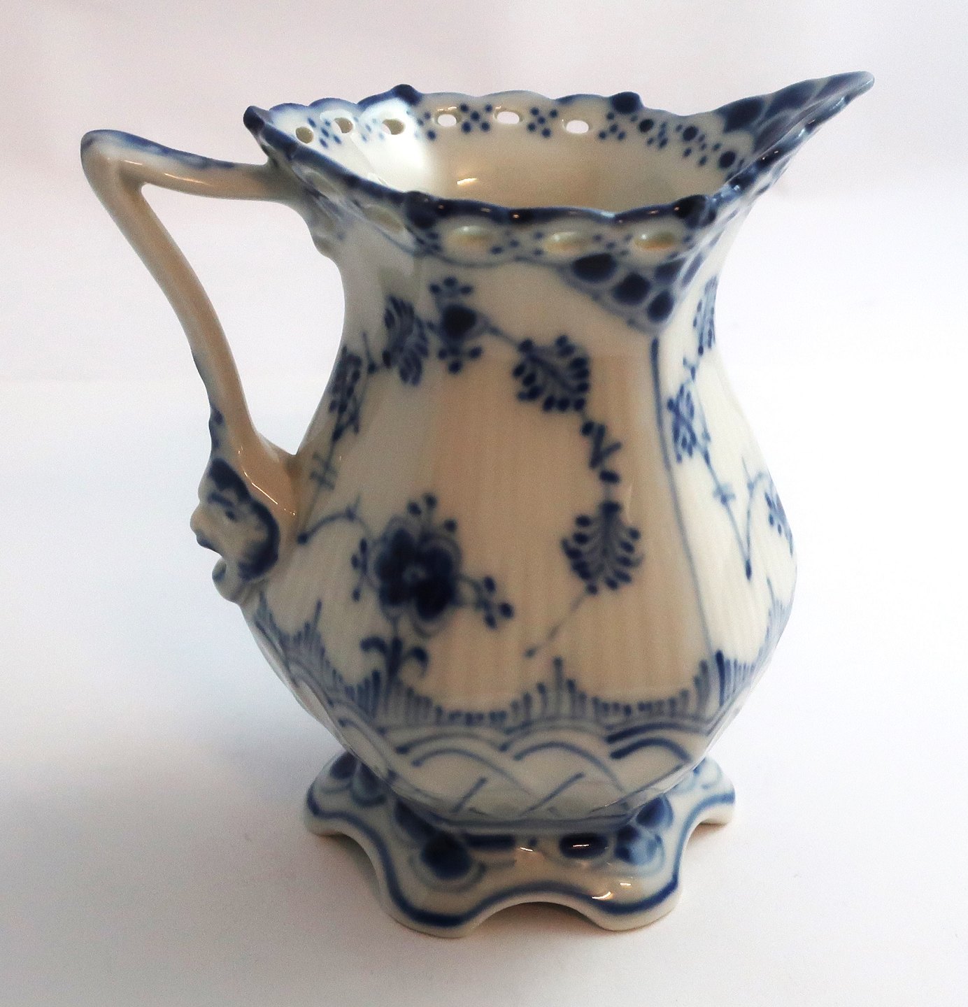 Royal Copenhagen. Musselmalet, helblonde. Flødekande. Model 1032. (1 sortering). Højde 10 cm.