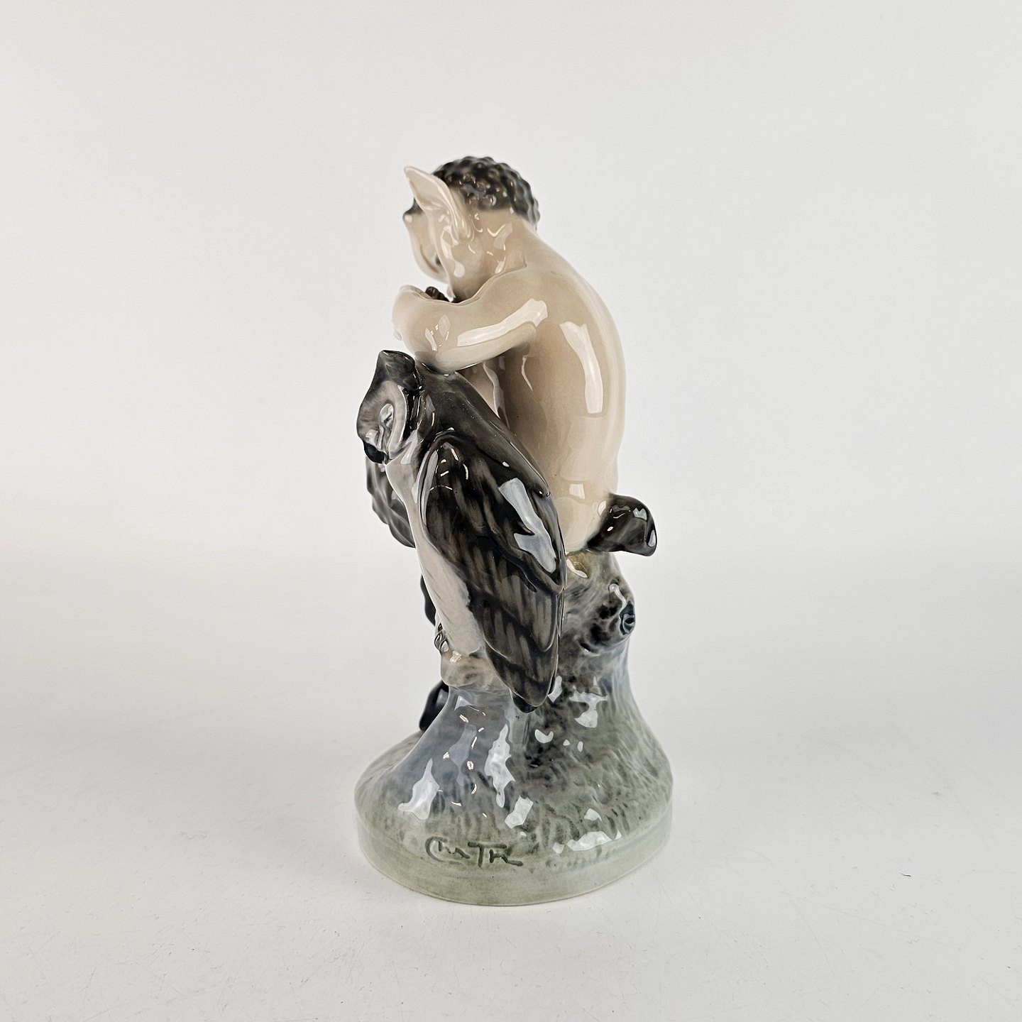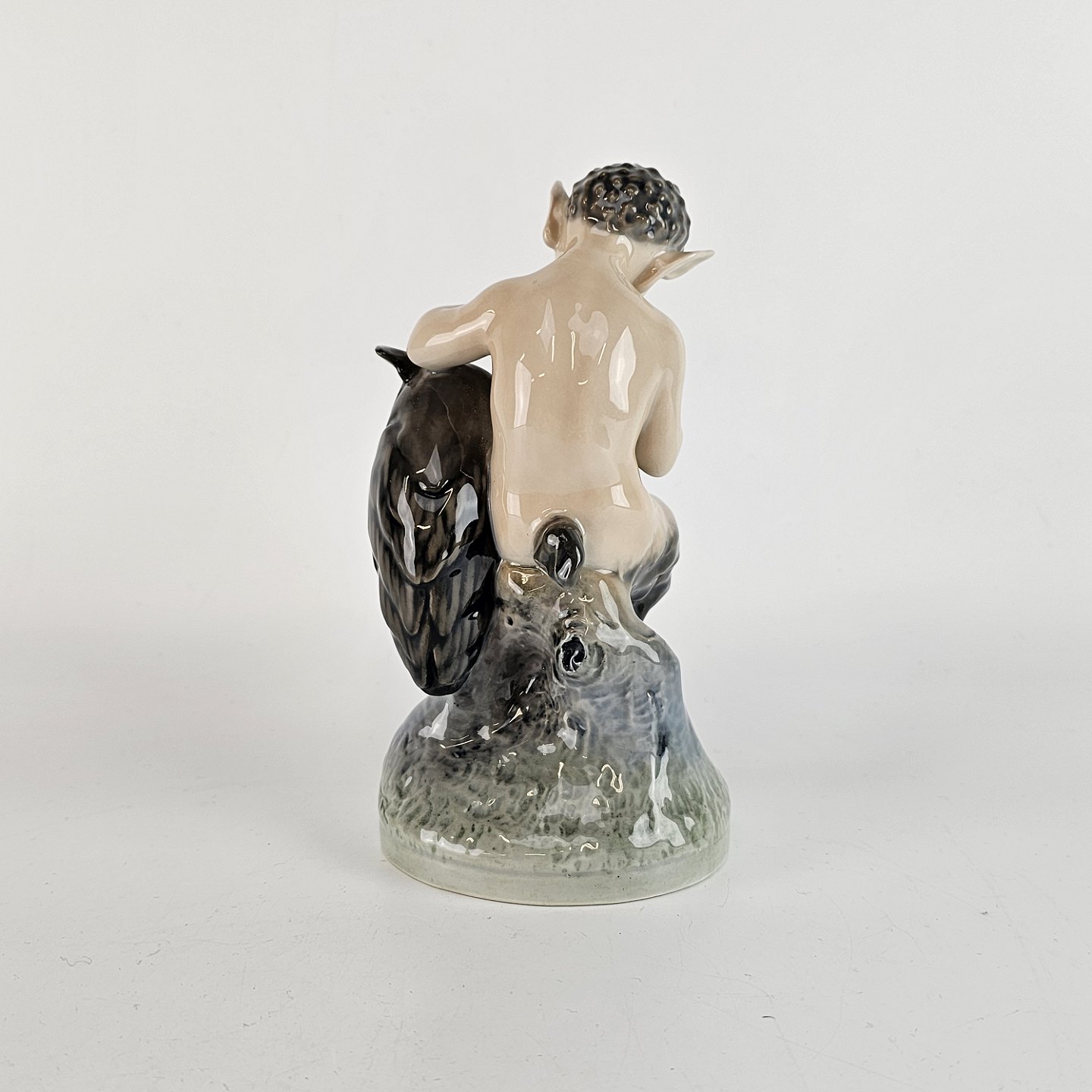 Kongelig porcelænsfigur med motiv af Pan med en ugle. Nr 2107.