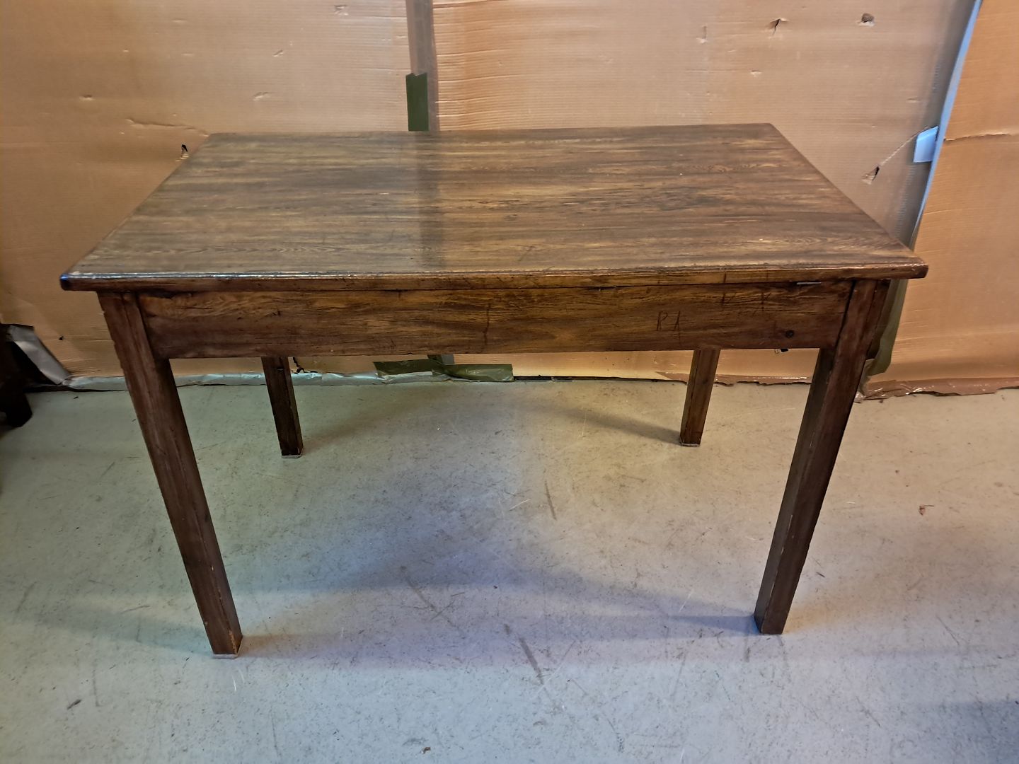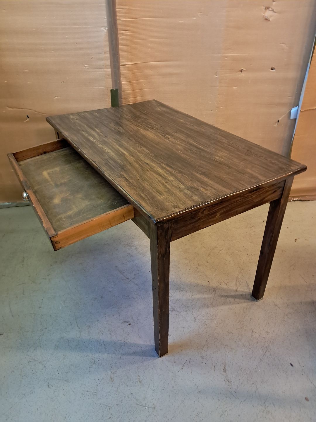 Bord i bejdset og lakeret massivt fyrretræ, fra 1930erne.