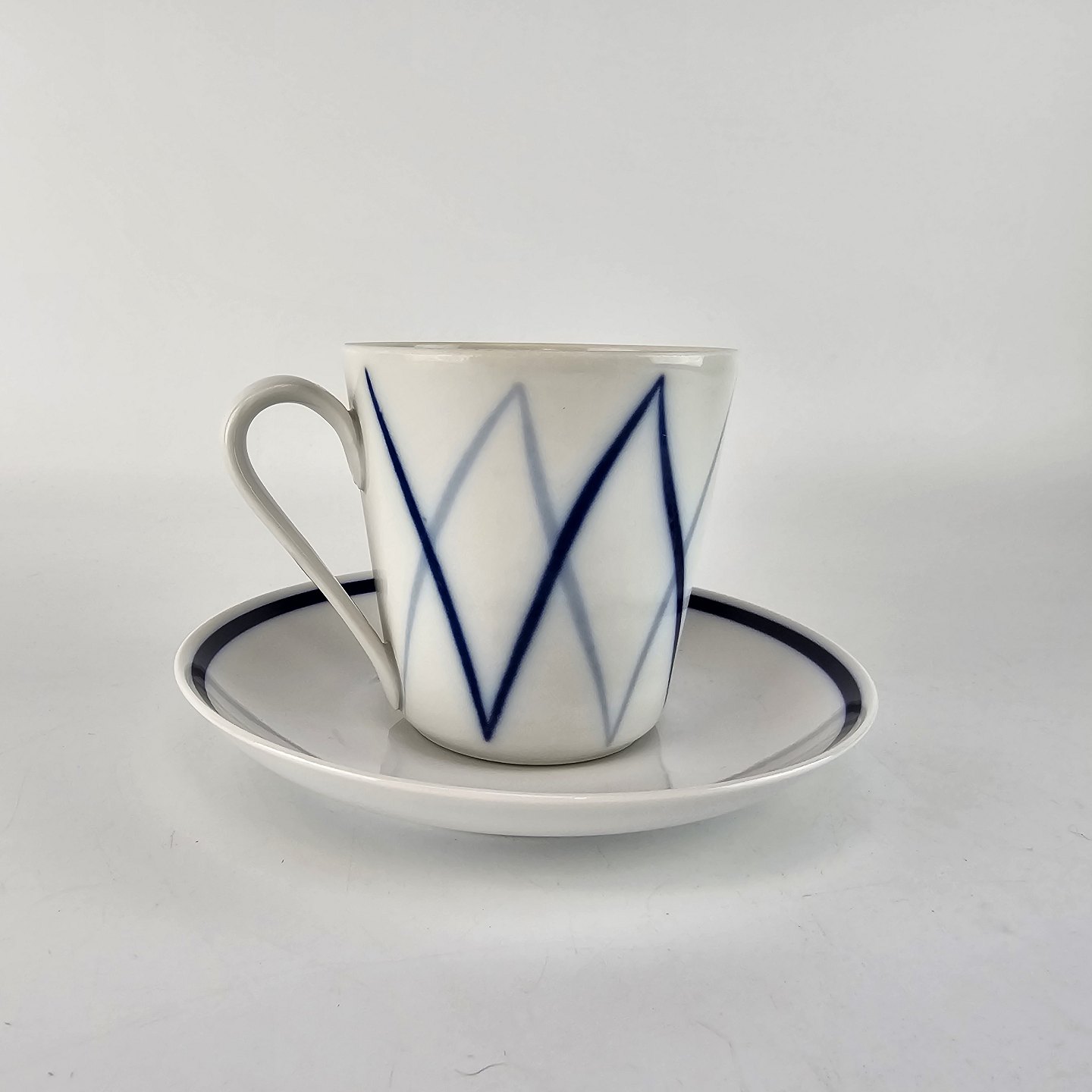 Blå Flamme er hvidt ildfast porcelæn, dekoreret med blå striber, der ligner flammer. Brugsspor kan forekomme