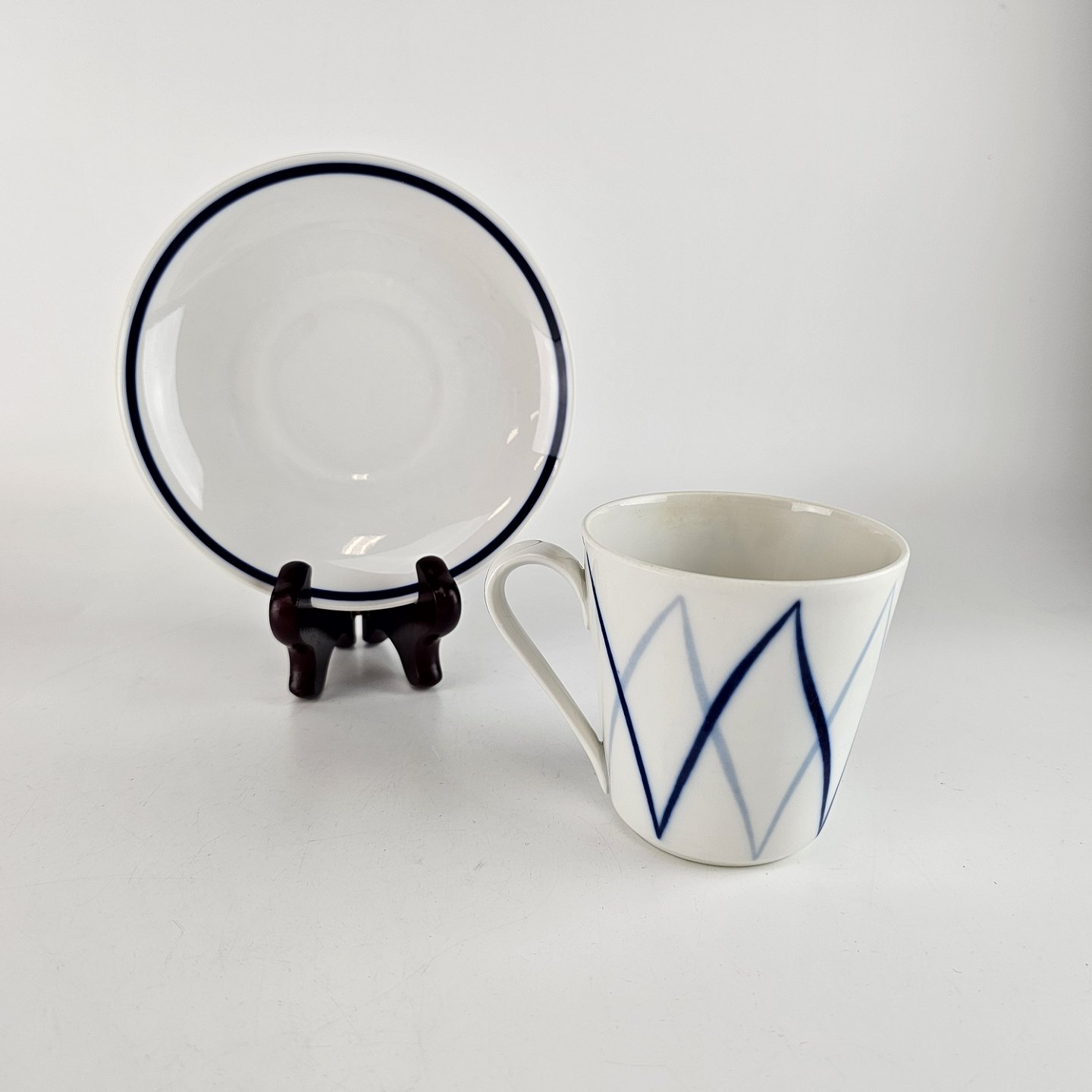 Text available in Danish: Tekop og underkop fra stellet Blå Flamme, også kendt som Harlekin. Dan-ild 40