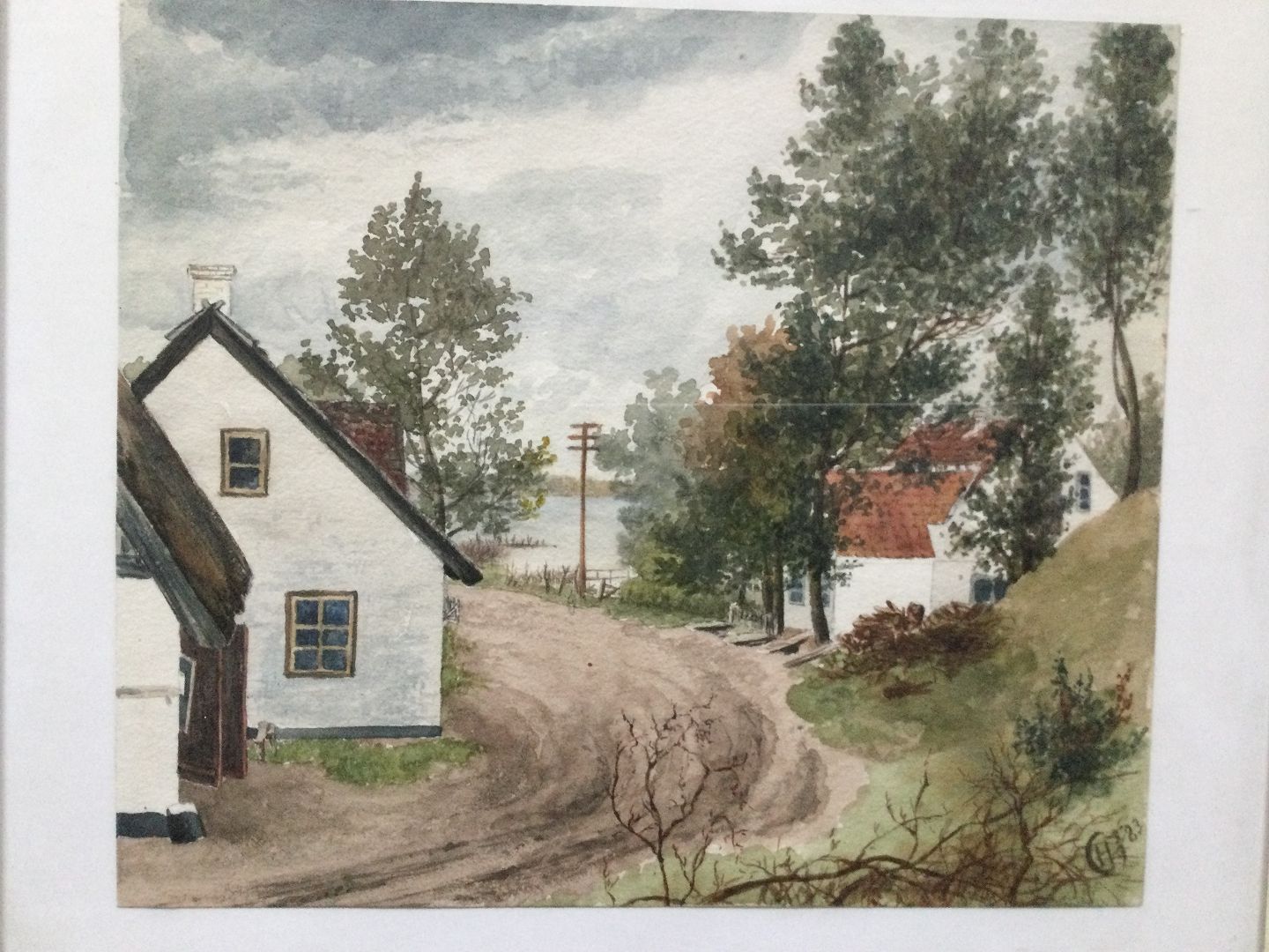 Akvarel af Catharine Heyerdahl - Vej gennem by 1883