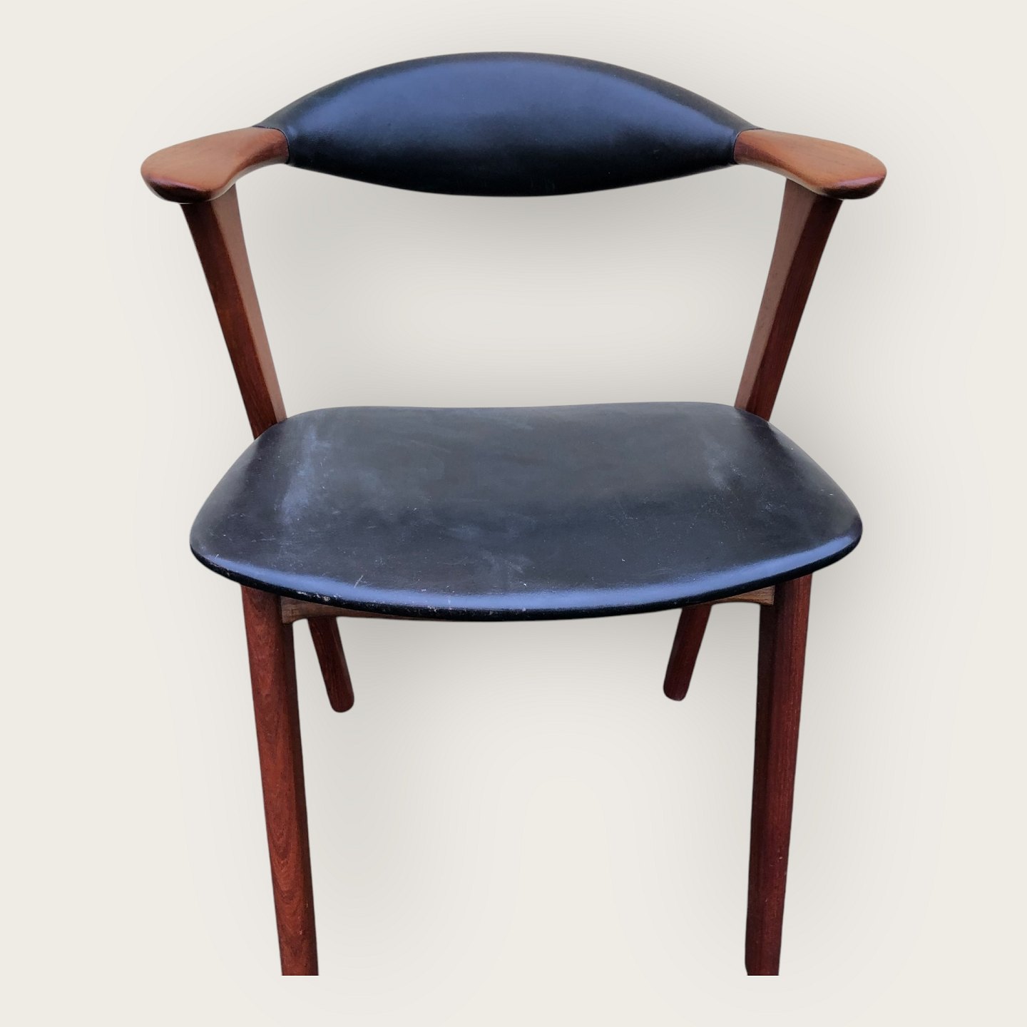 Armstol i pæn brugt stand, Danish modern fra 1960'erne, Teaktræ og læder, Bredde 58,5cm