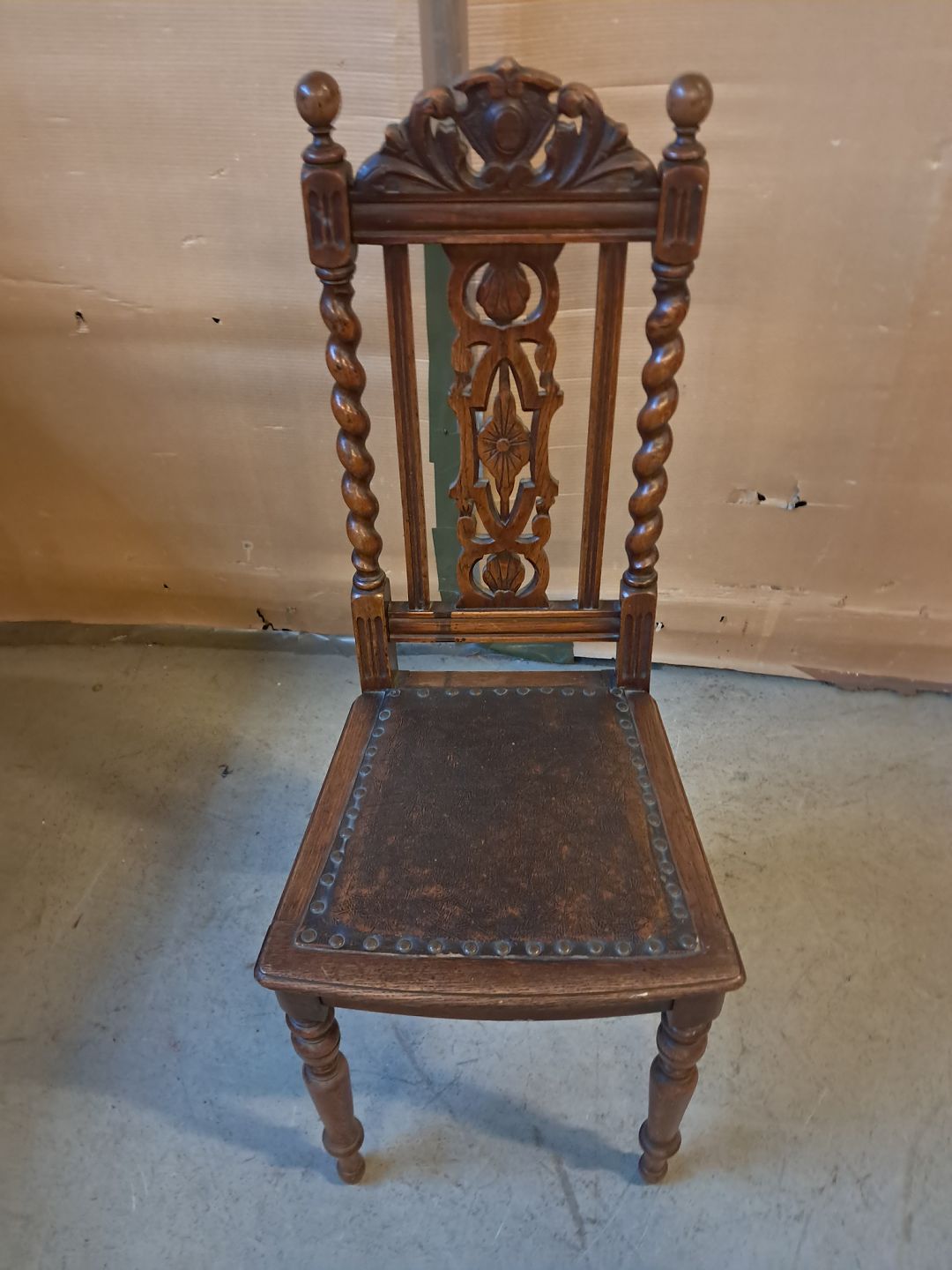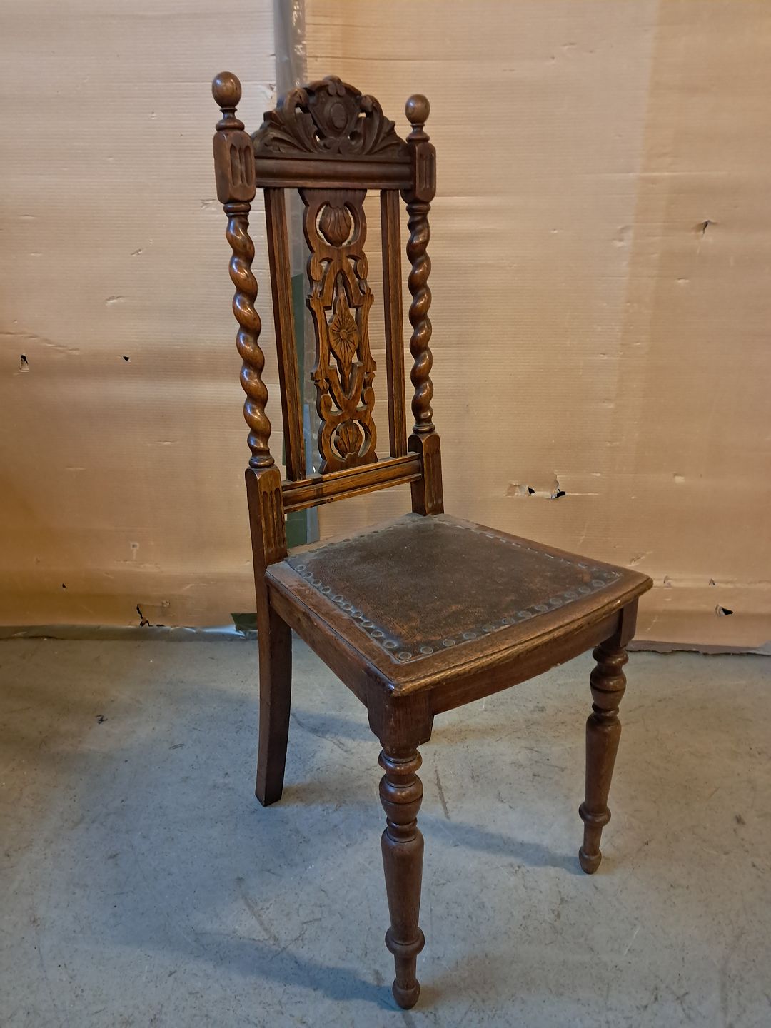 Stol i massivt egetræ, fra 1910erne.