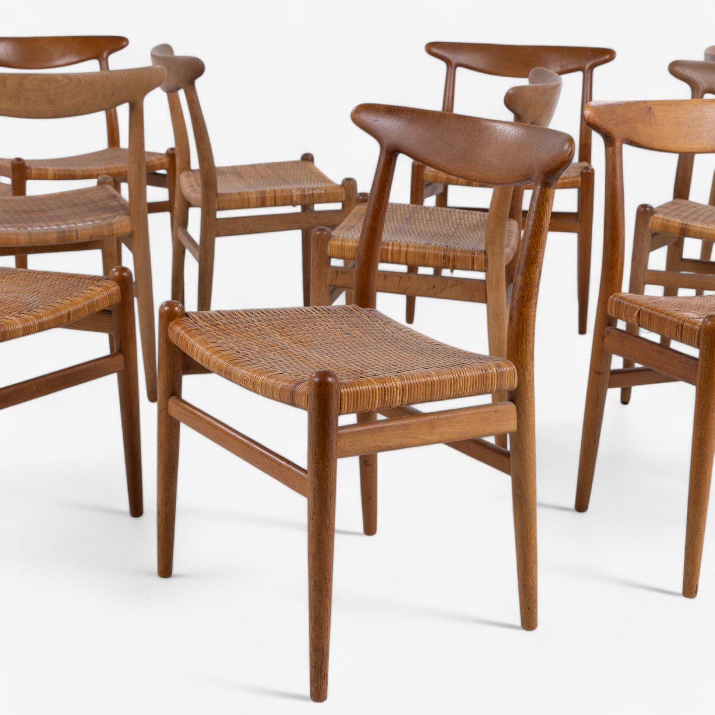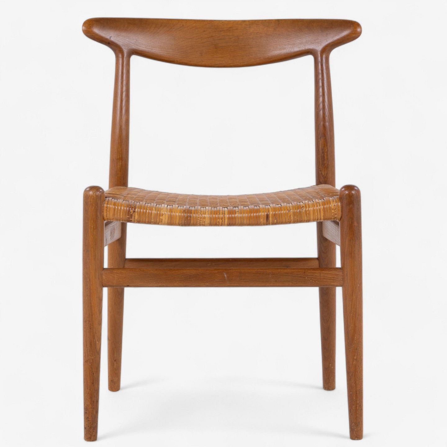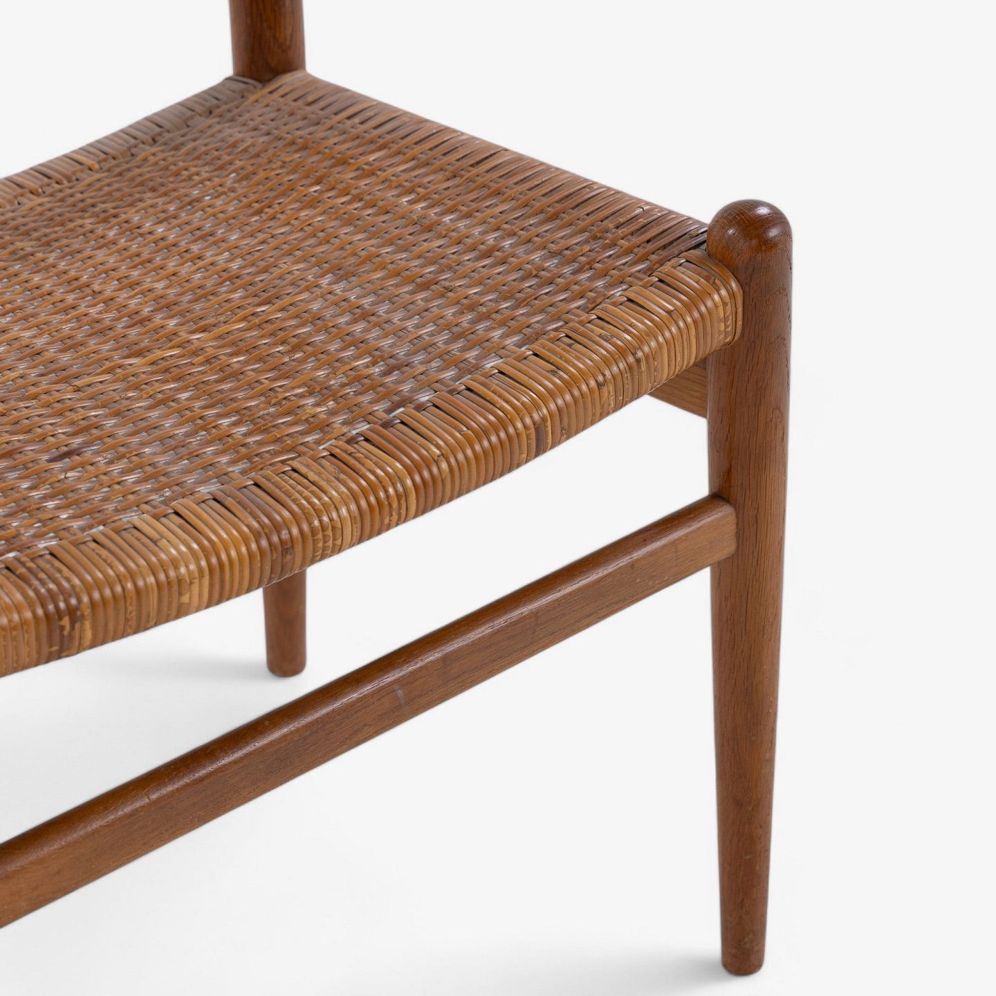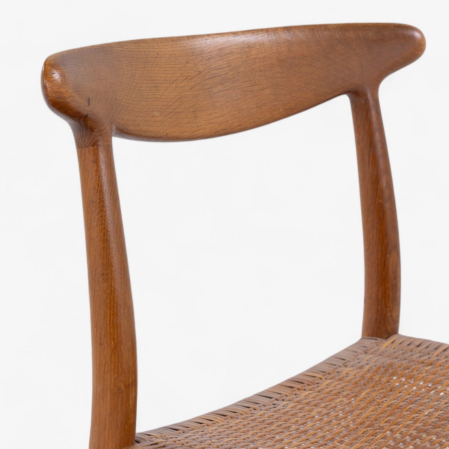 W2 - Spisestol i patineret eg med sæde i sjeneflet. Stemplet fra producent.
