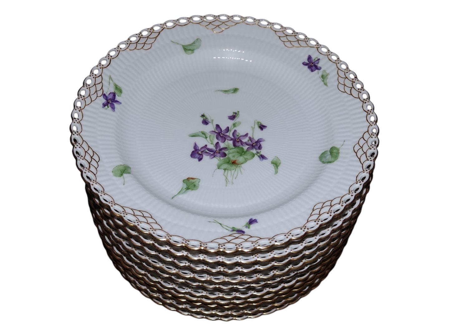 Royal Copenhagen Blå Violer Helblonde med guldkant, middagstallerken.