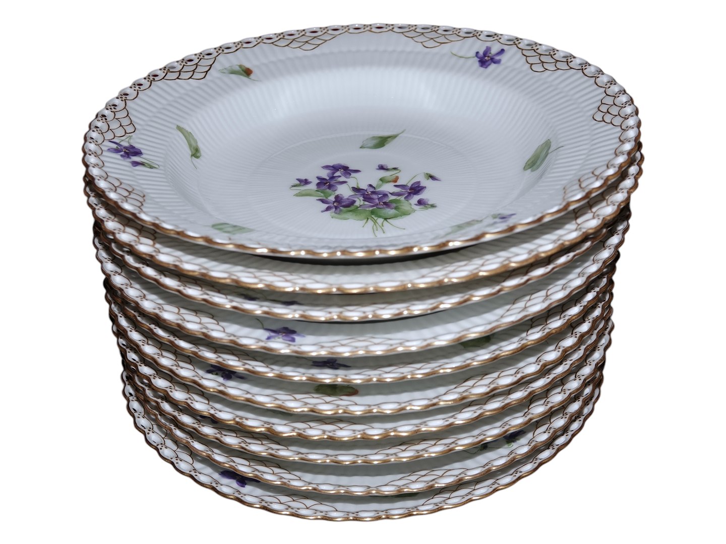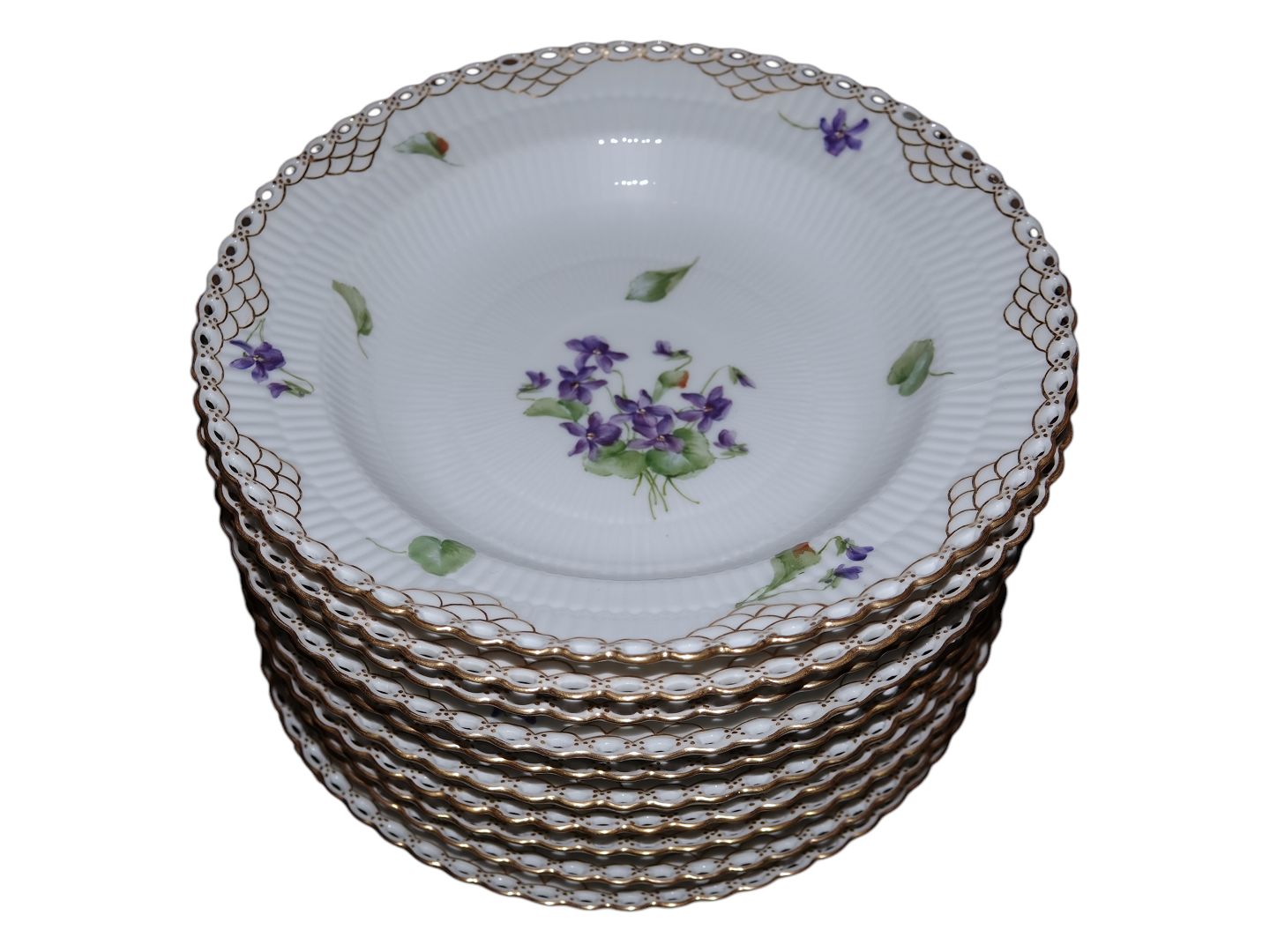 Royal Copenhagen Blå Violer Helblonde med guldkant, stor dyb suppetallerken.