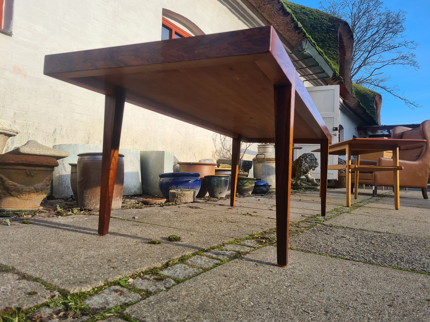 Text available in Danish: Severin Hansen sofabord udført i fineret palisander m. indlagte kakler fra Baca serien designet af Nils Thorsson for Den Kgl. Porcelænsfabrik.