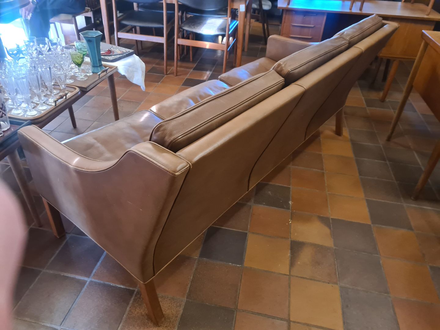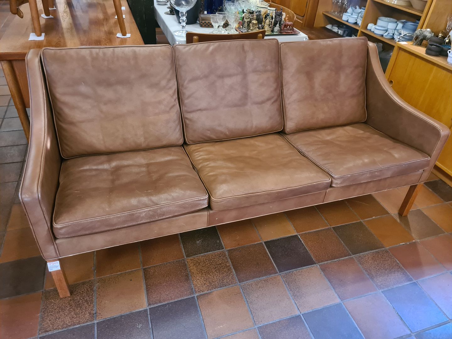 Børge Mogensen 3 pers. sofa model BM2209 betrukket med brunt skind samt ben i teak.