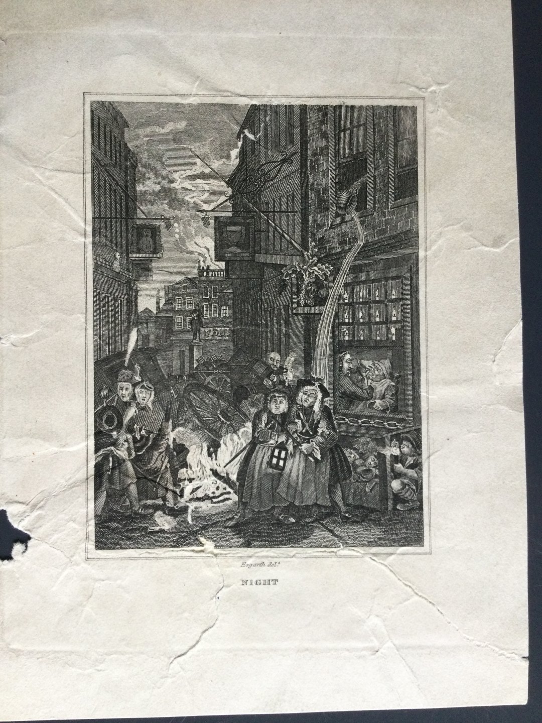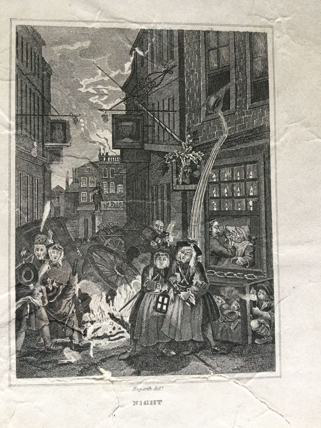 Kobberstik af William Hogarth - "Night".