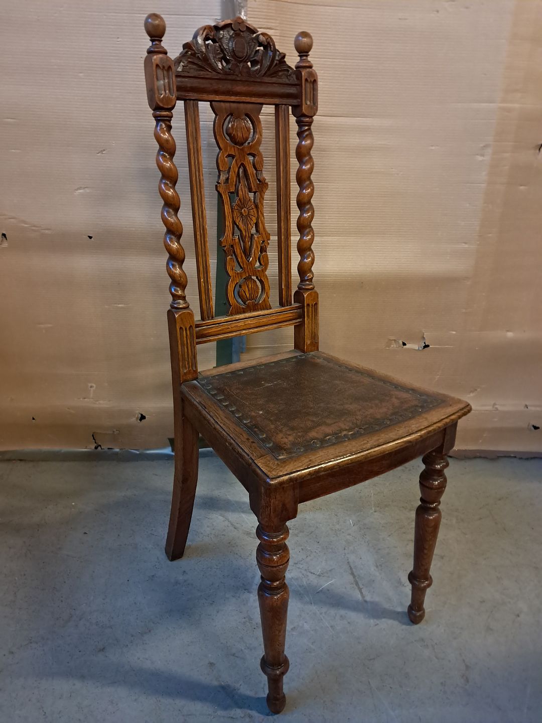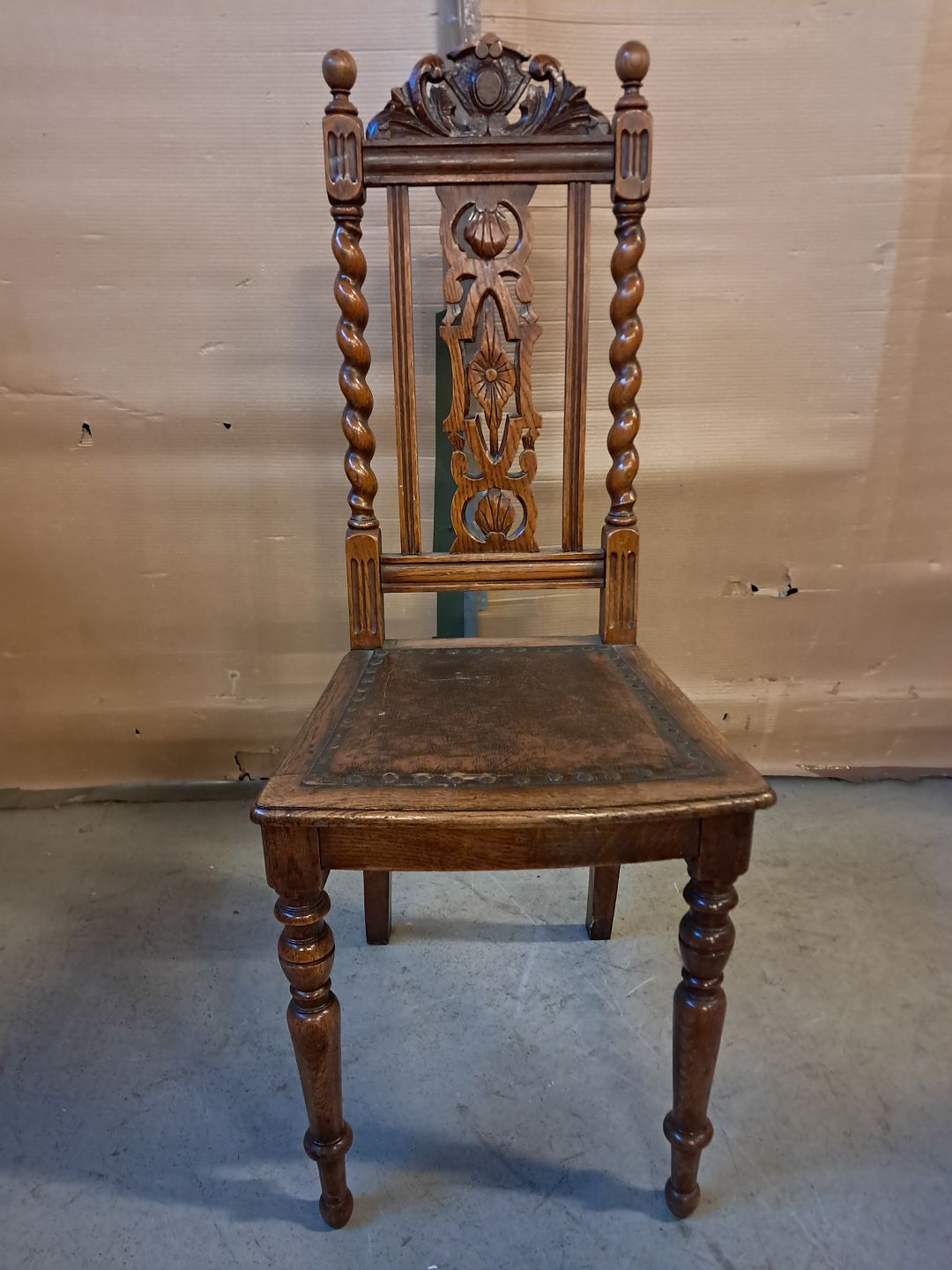Stol i massivt egetræ, fra 1920erne.