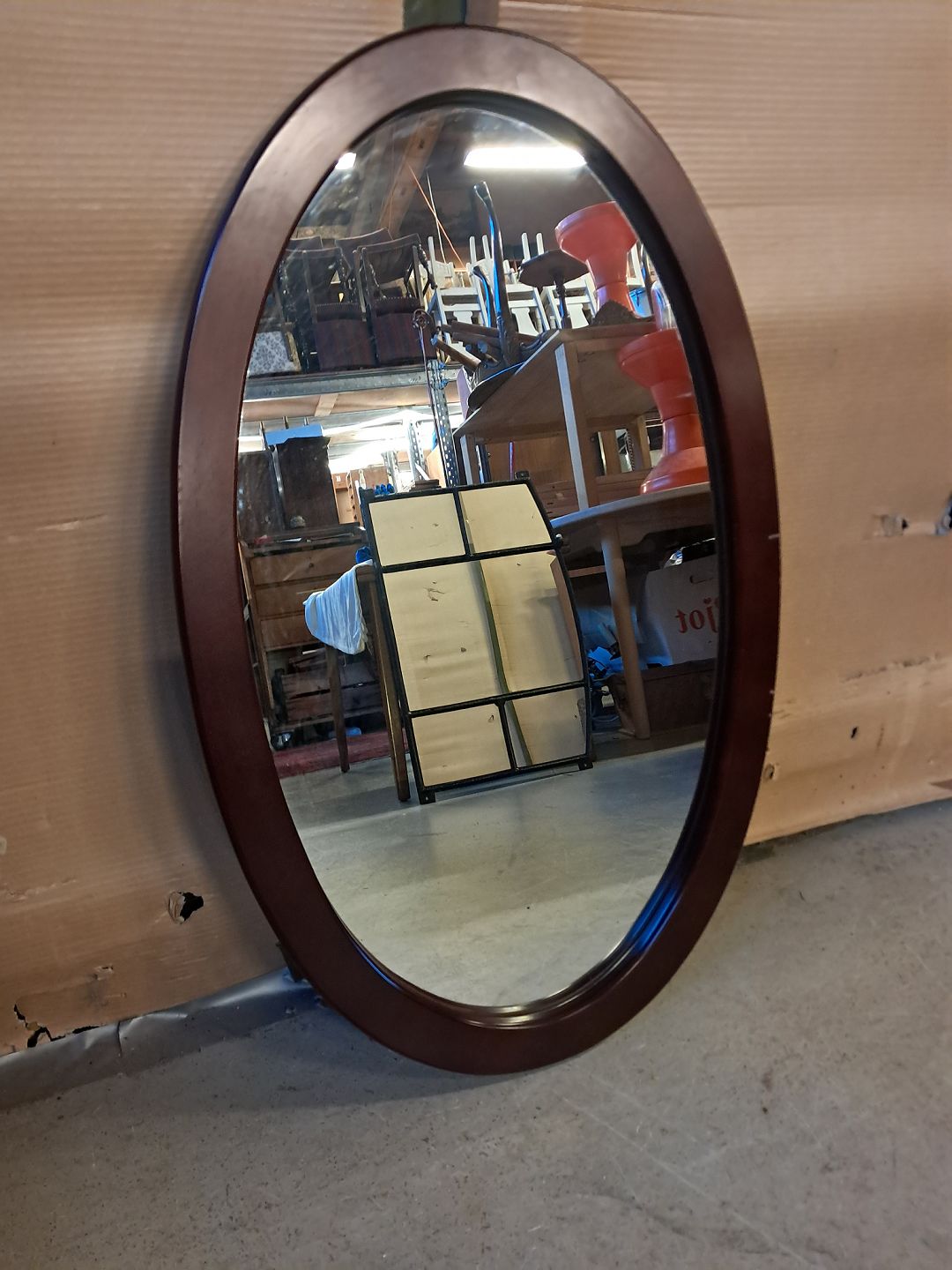 Ovalt spejl i fineret mahogni, fra 2000erne.