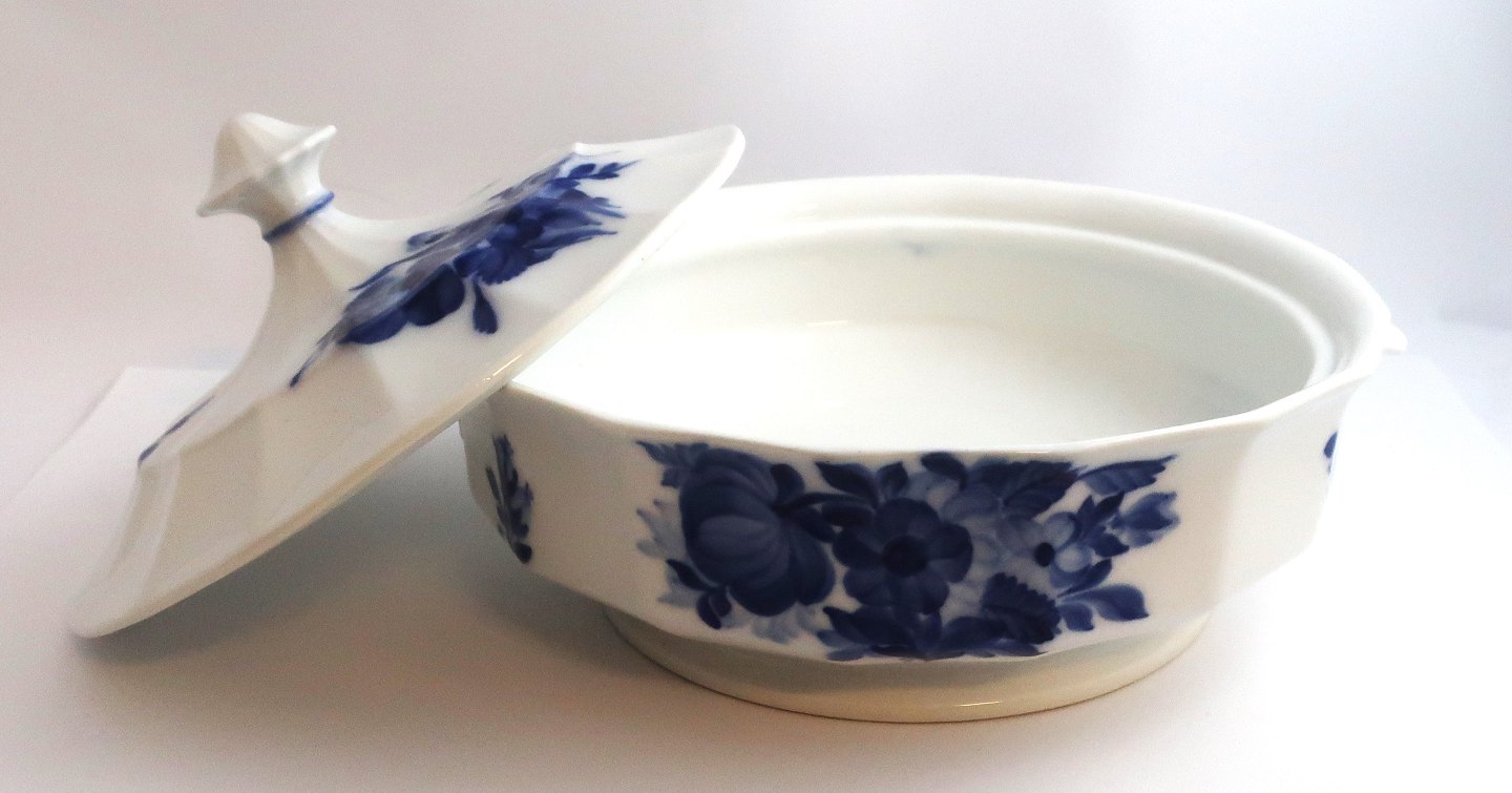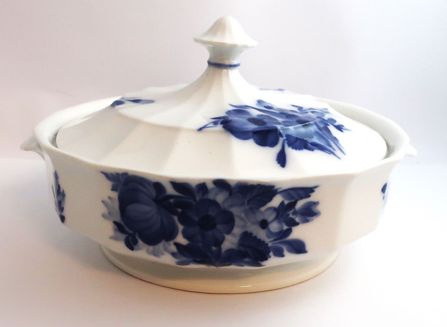 Royal Copenhagen. Blå blomst, kantet. Rundt lågfad. Model 8535. Diameter 22 cm. Produceret før 1923. (1 sortering)