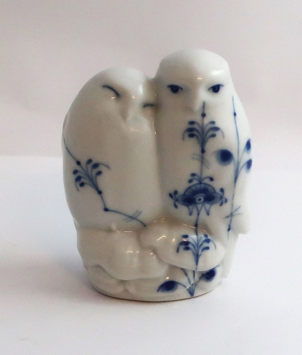 Royal Copenhagen. Porcelænsfigur. Uglepar musselmalet. Model 077. Højde 8,5 cm. (1 sortering)