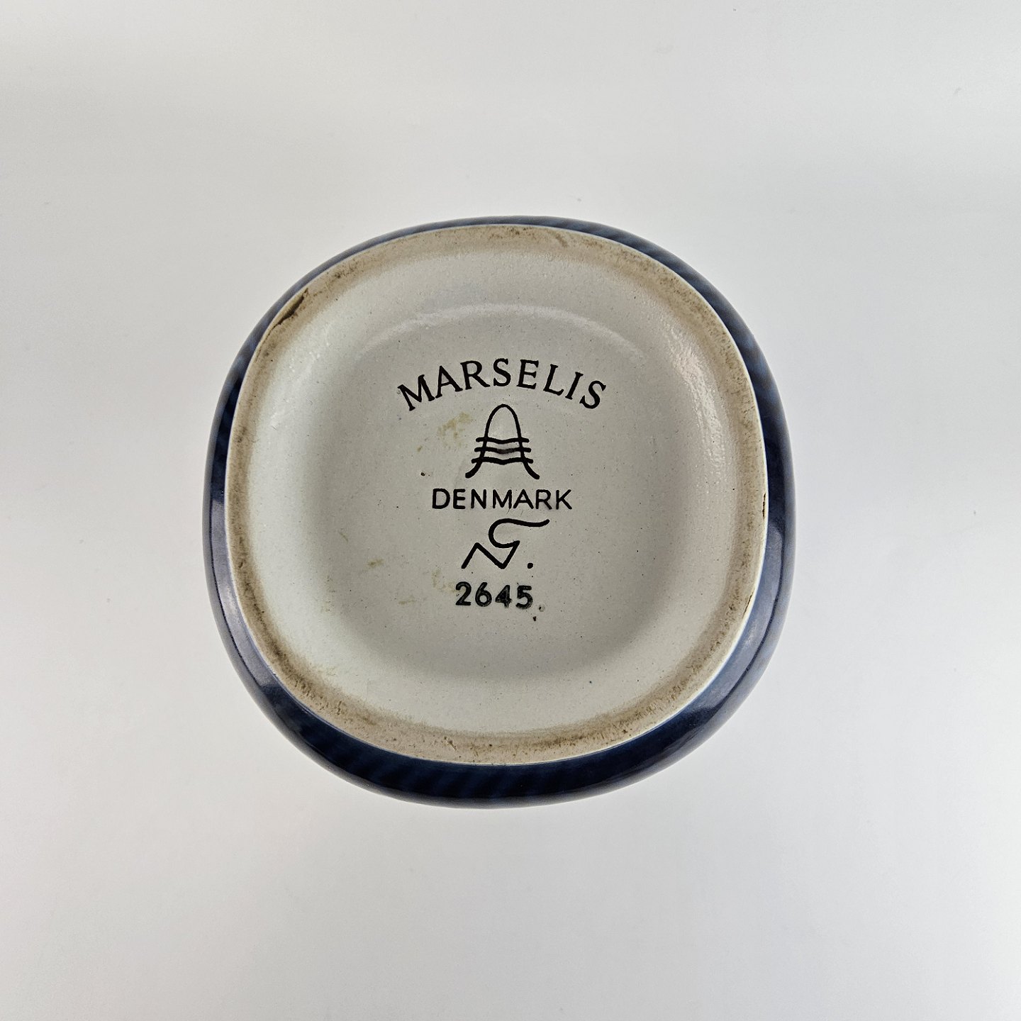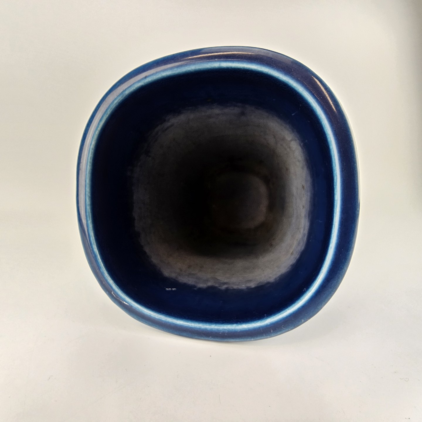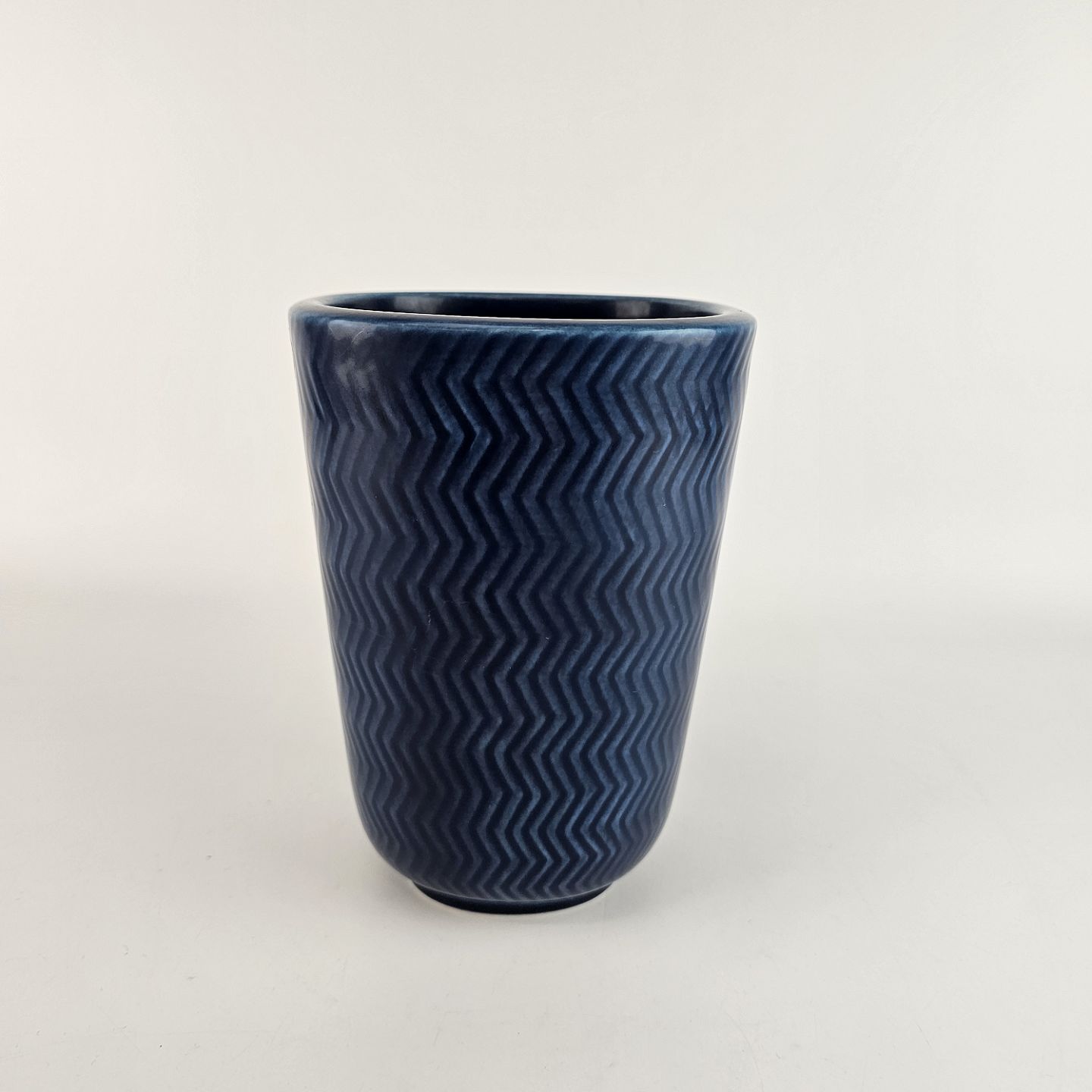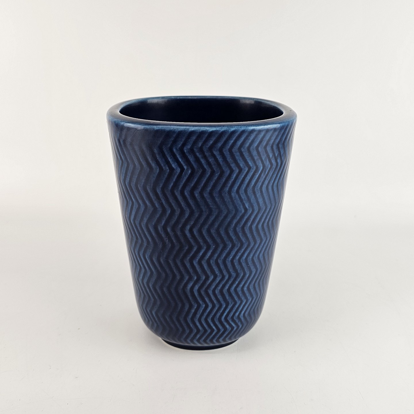 Kantet Marselis vase i mørkeblå fajance med rillet mønster. Nr. 2645