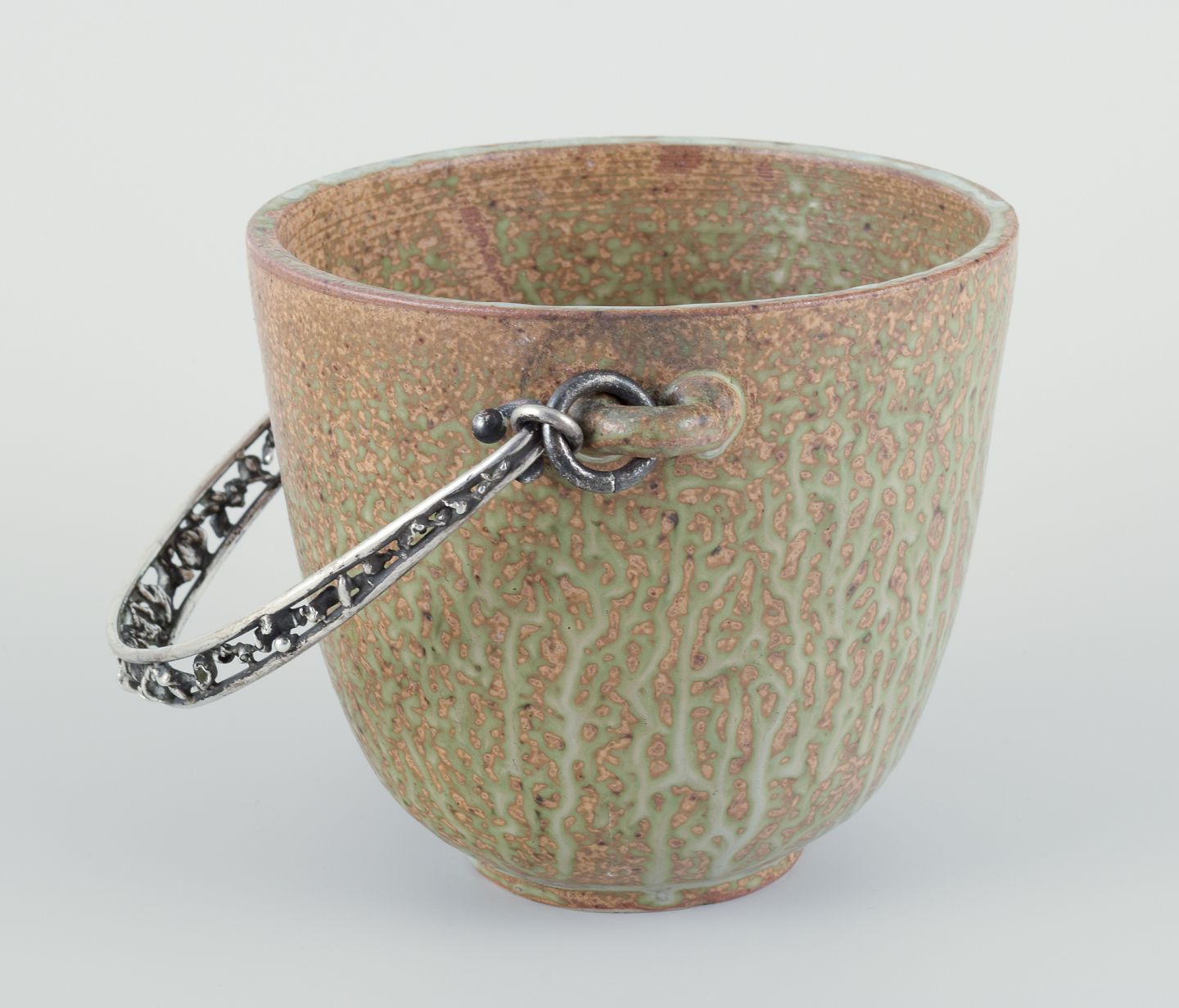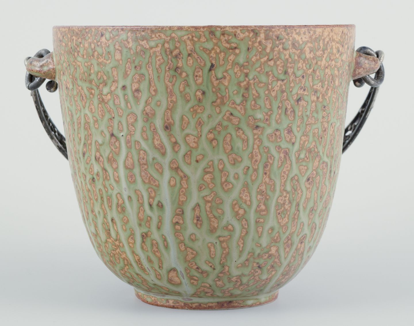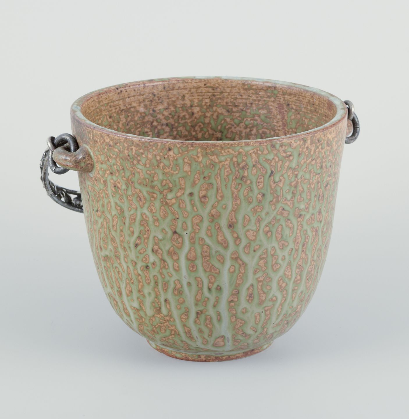 Arne Bang og Aage Weimar. Stor iskøler i keramik, hank i tretårnet sølv.