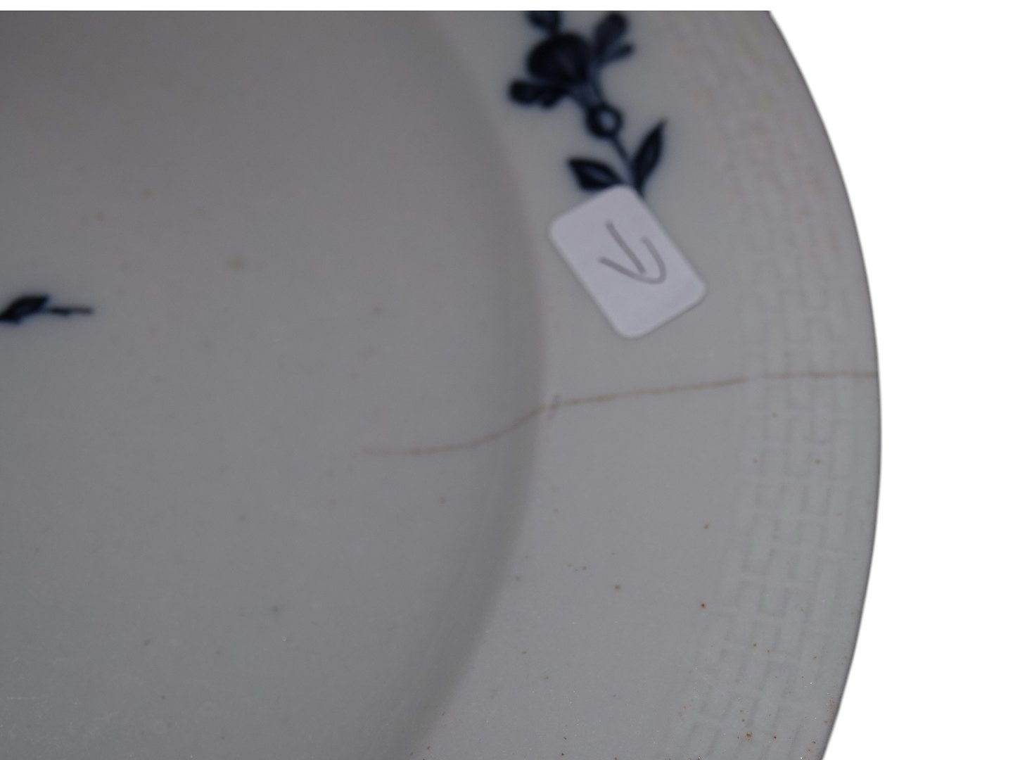 Royal Copenhagen Blå Blomst Flettet, tidlig middagstalleken der er grålig i porcelænet.