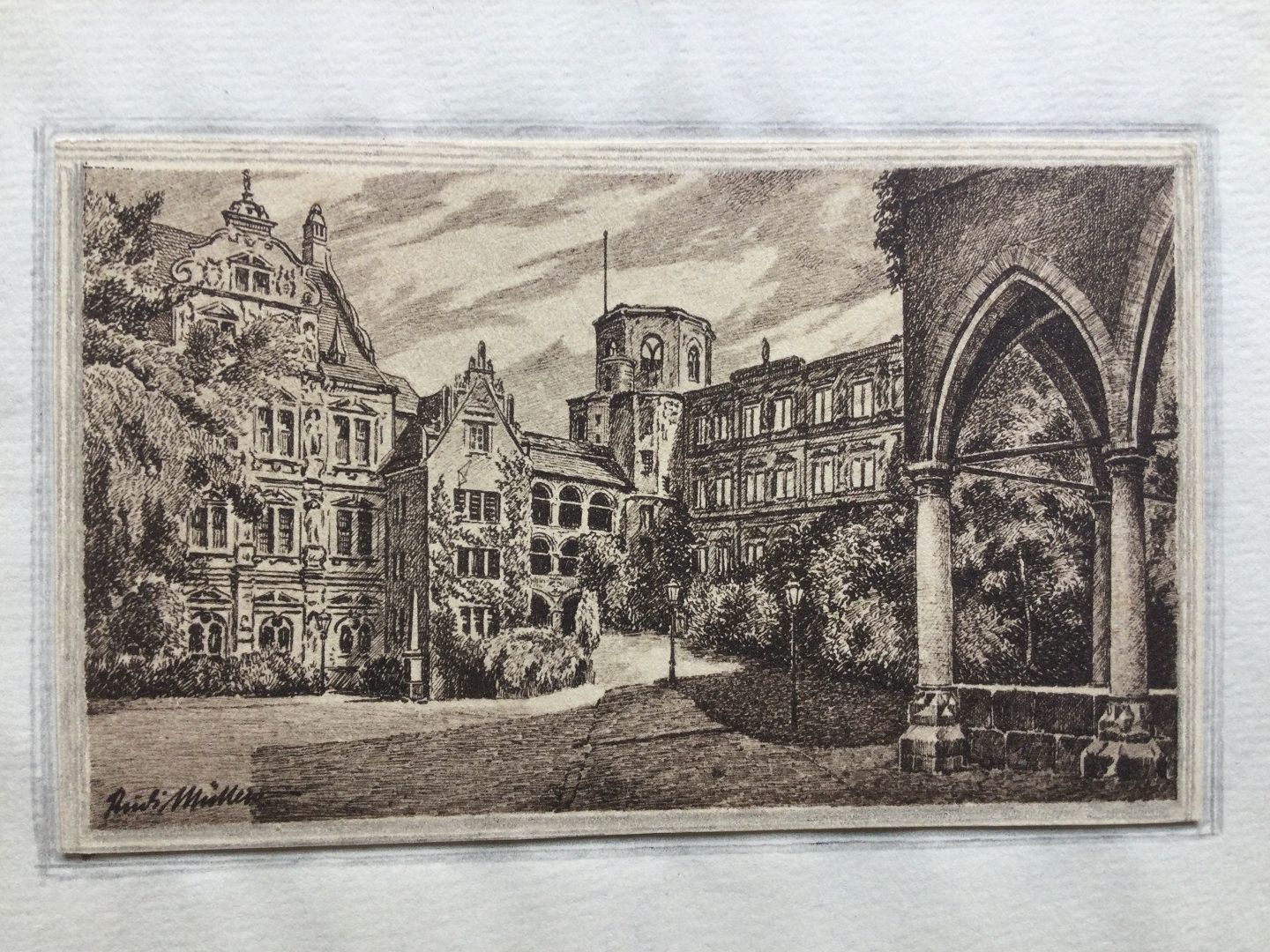 Radering af Richard Müller - Slotsgården i Heidelberg.