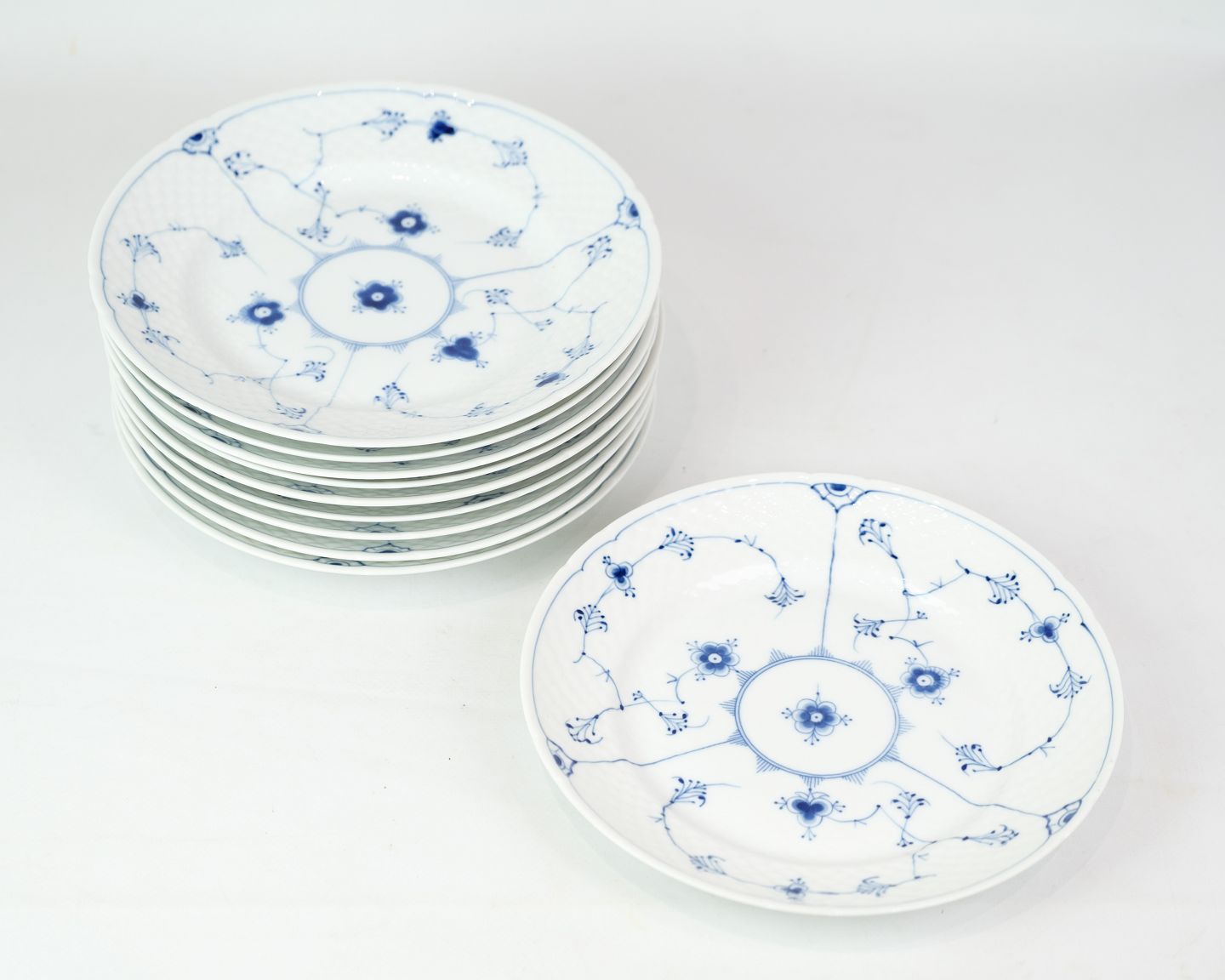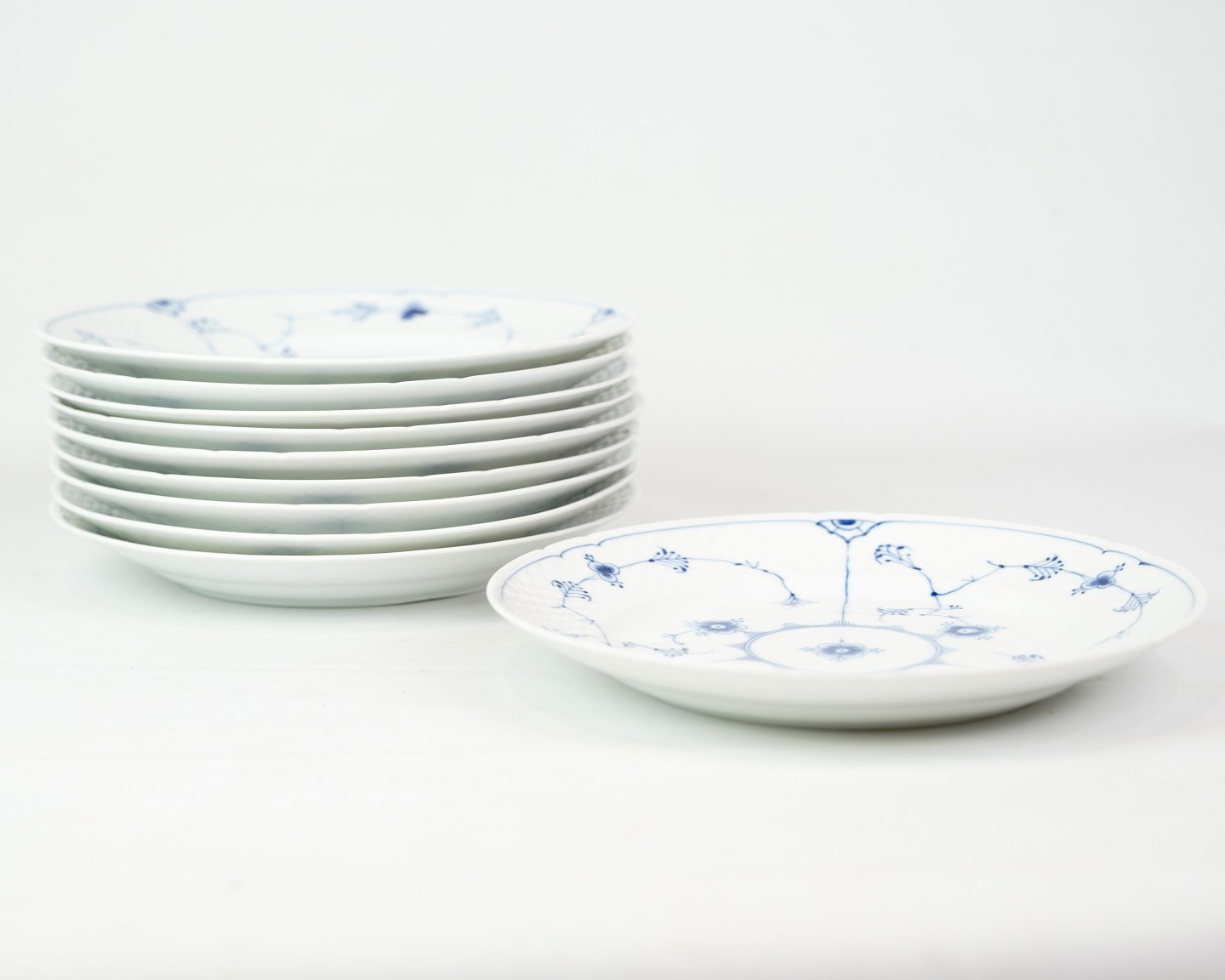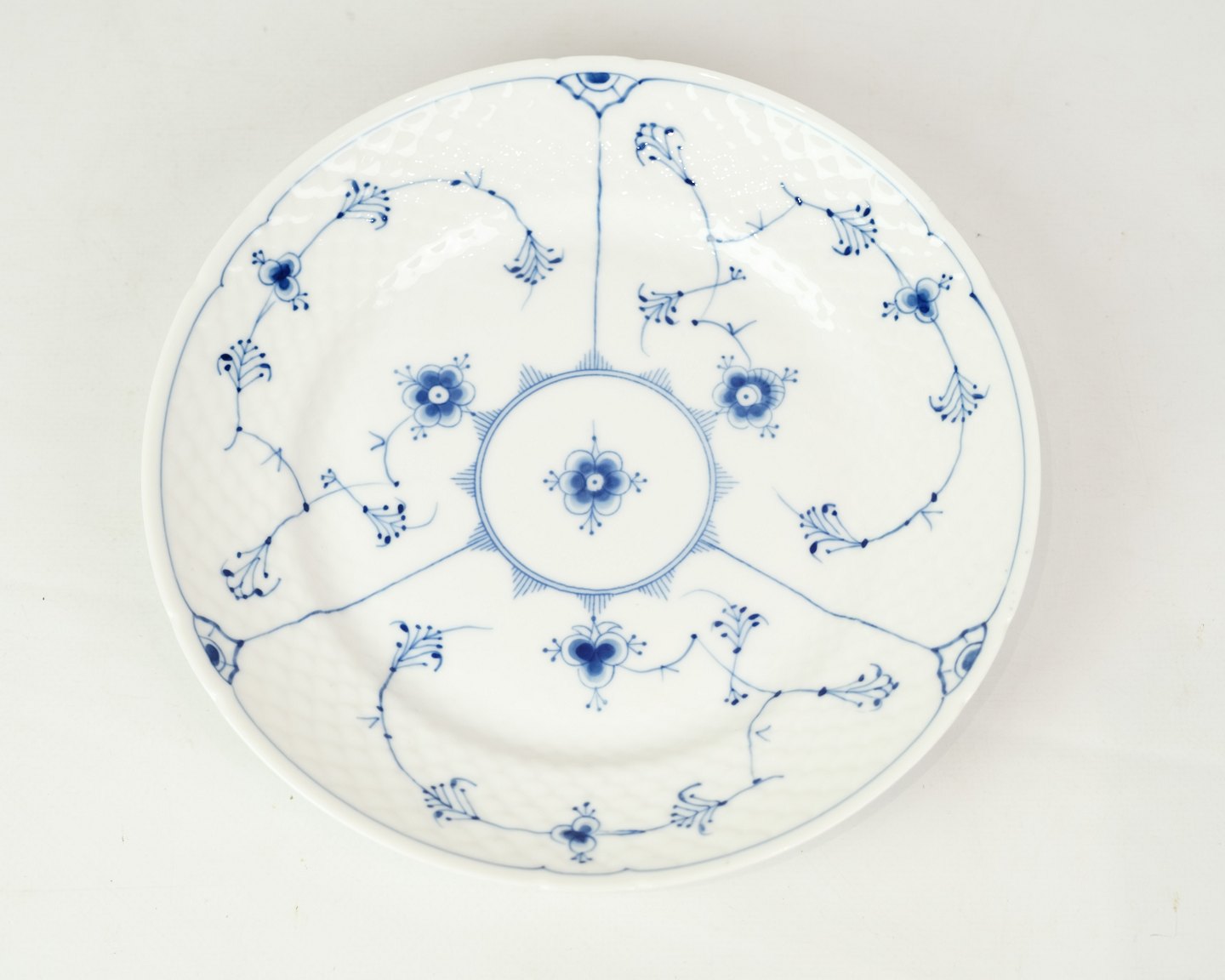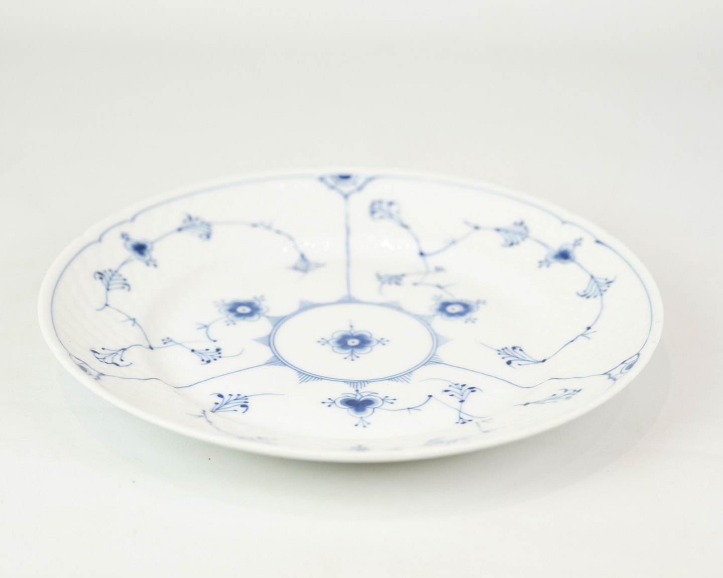 Lunch plate no. 26 from Bing & Grondahl. Made of porcelain with classic blue painted blue fluting decoration.
