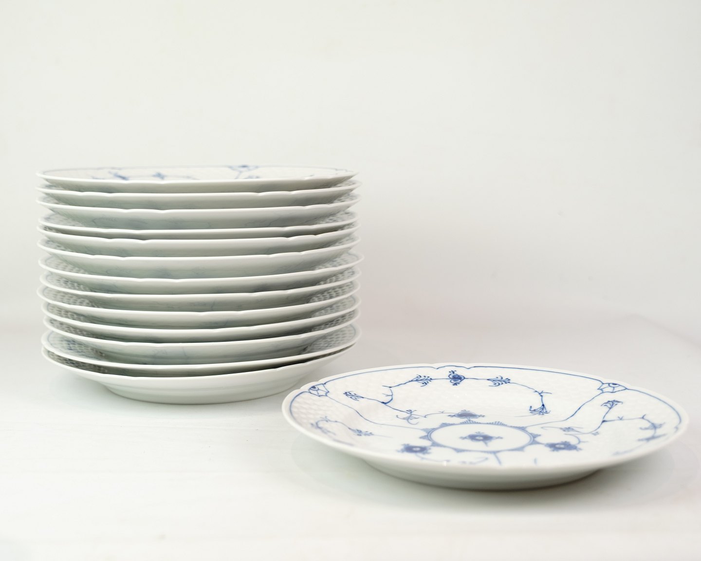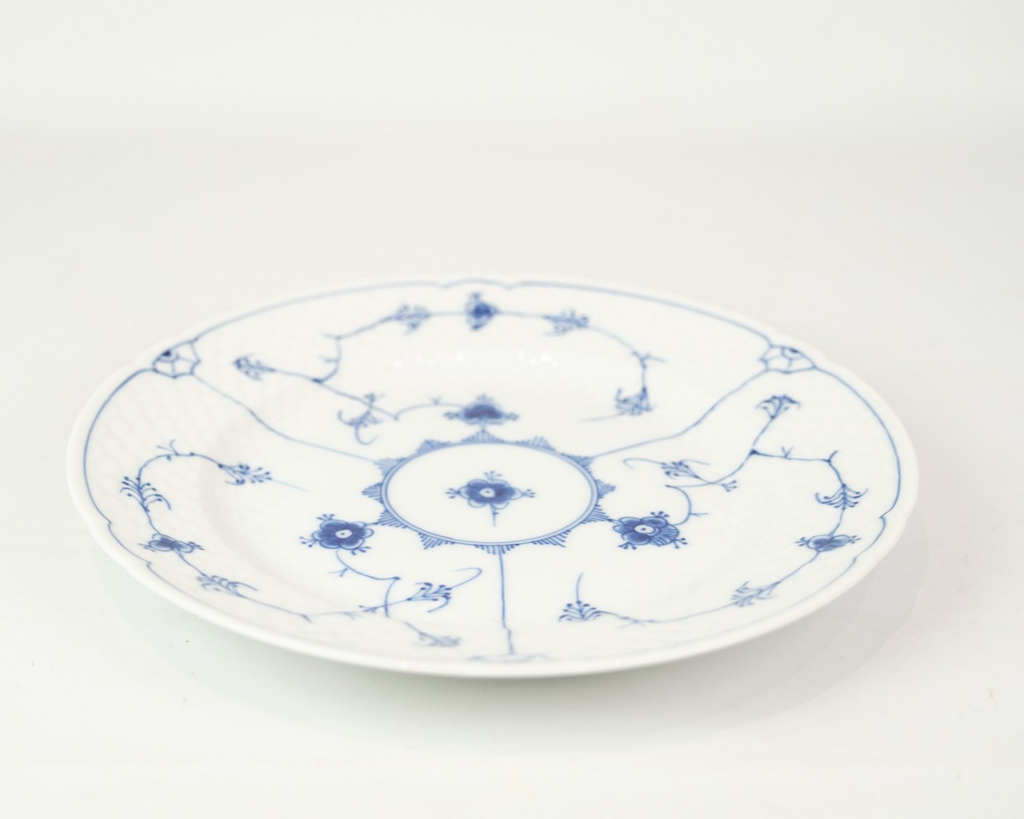 Middagstallerken nr. 025 fra Bing & Grøndahl. Fremstillet i porcelæn med klassisk blåmalet musselmalet dekoration.