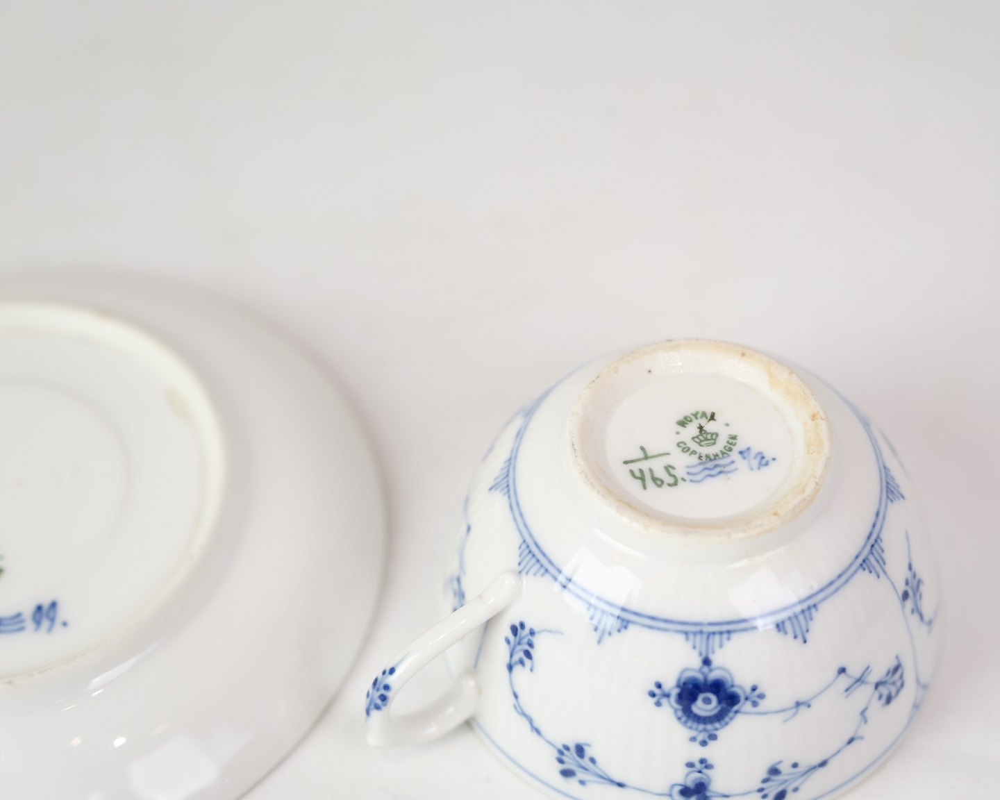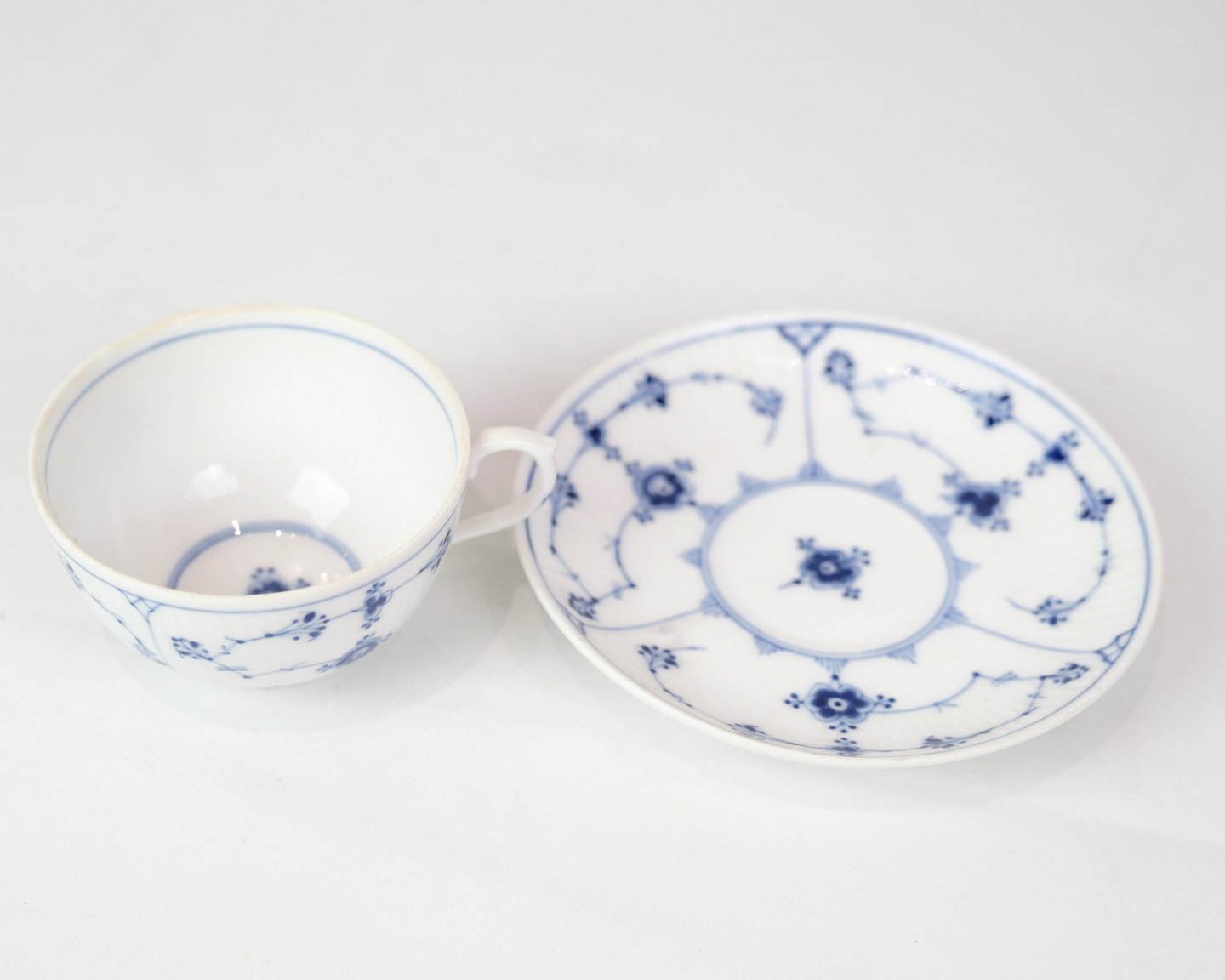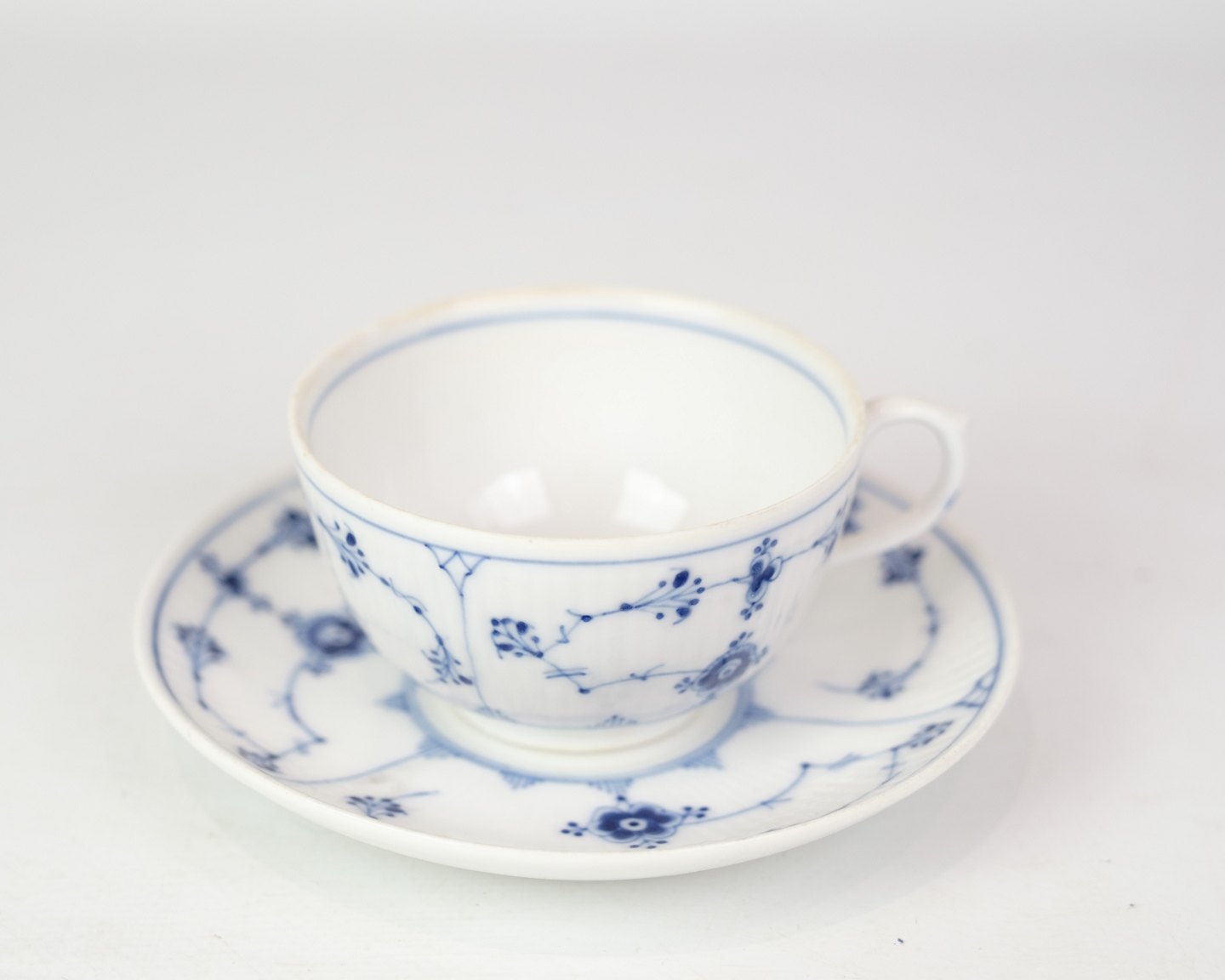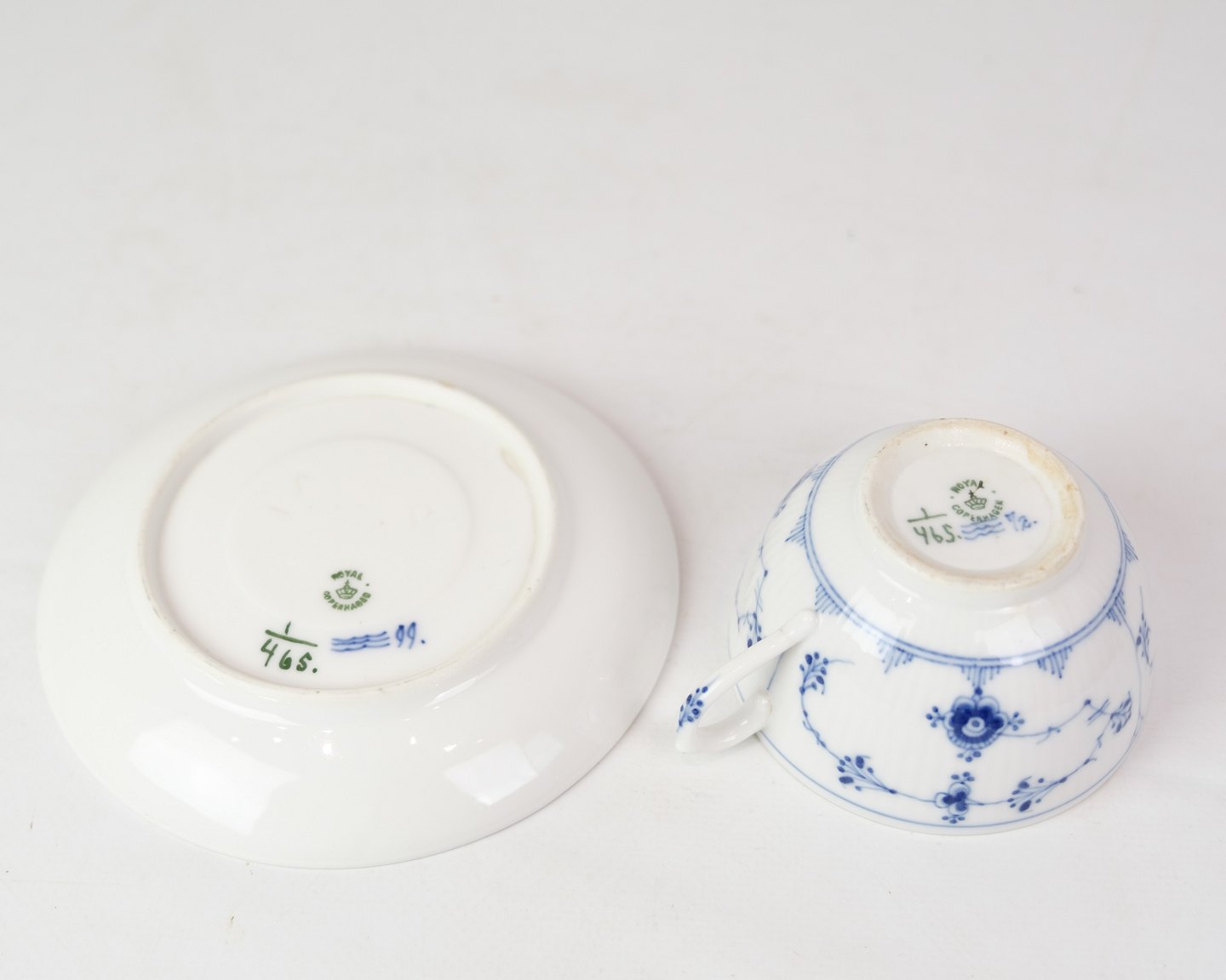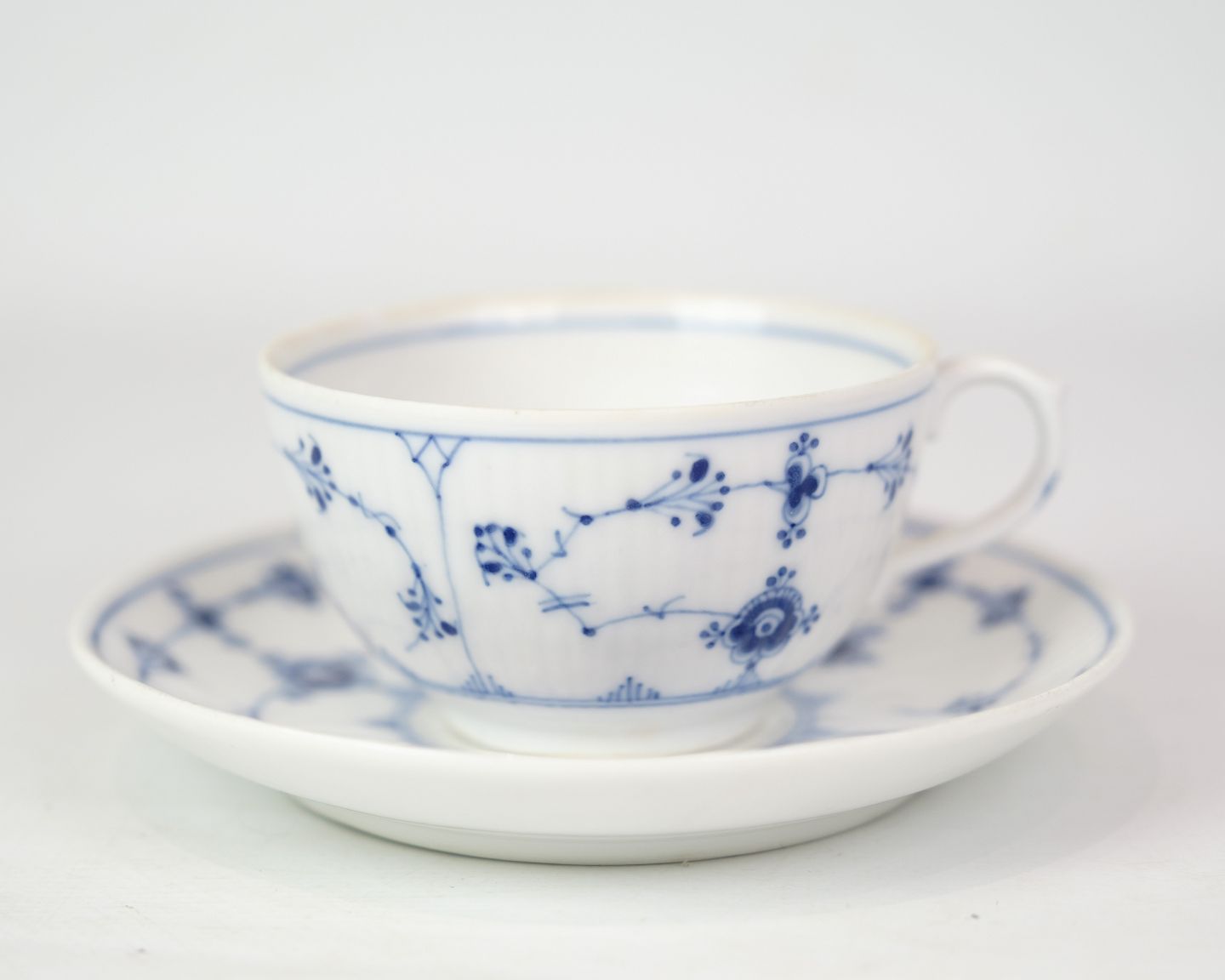 Tekop Med Underkop - Nr. 1/465 - Porcelæn - Musselmalet Riflet - Royal Copenhagen